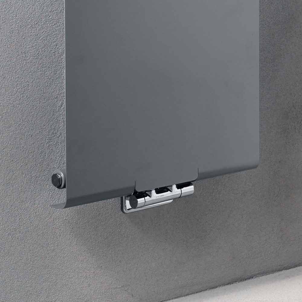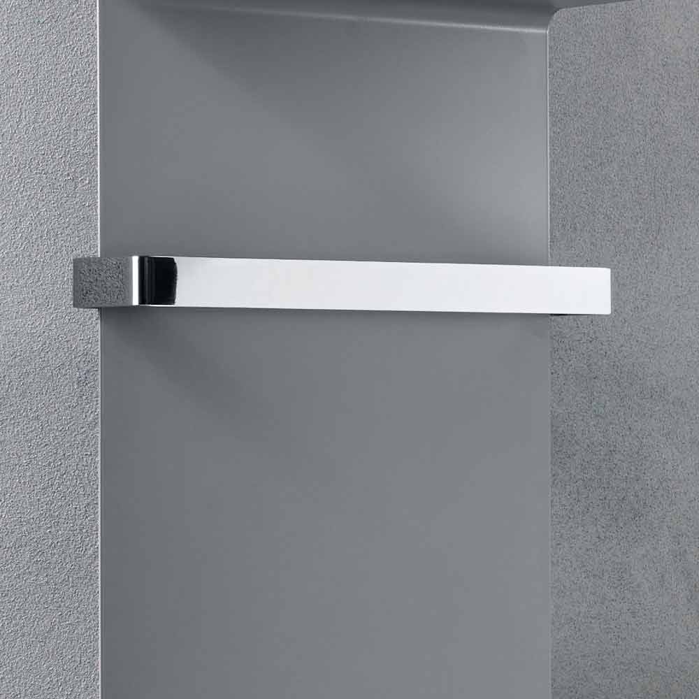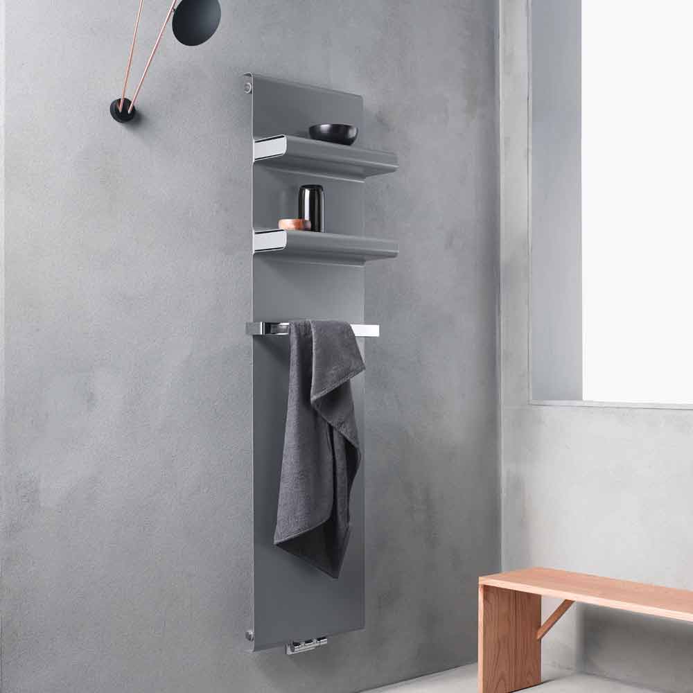 hydraulische Strahlungsplatte verfügt über ein modernes und minimalistisches Design mit praktischen und eleganten integrierten Regalen mit Abdeckung und verchromtem Handtuchhalter, der die Kühlerbreite um 4 cm verlängert.