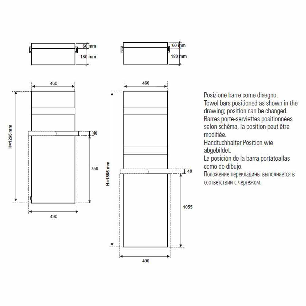 - H 1865 x L 460 x Inter. 1760 mm x Ausbeute w (Δt50 *) 719; Ausbeute w (Δt30 *) 379; Ausgang w (Δt26 *) 316 (2 Regale).