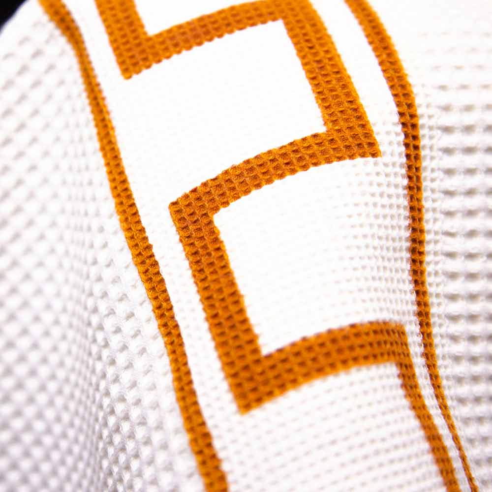 • Stoff : 100% Wabenbaumwolle. Zu den Hauptmerkmalen von Wabengeweben gehört sicherlich die hohe Hydroskopizität, nämlich das hohe Wasseraufnahmevermögen und damit die große Trocknungskraft sowie die hohe Bequemlichkeit und Praktikabilität.