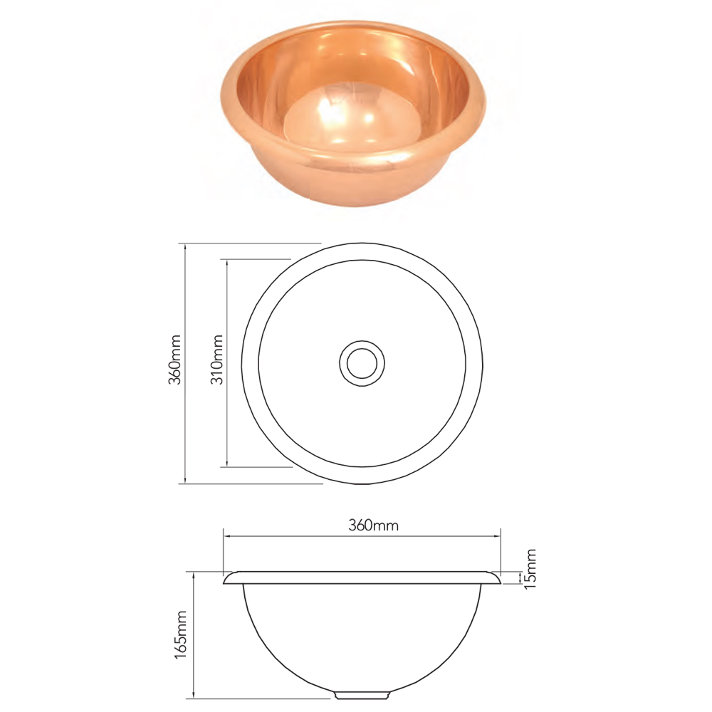 Rundes Waschtisch aus Kupfer, handgefertigt, Alba