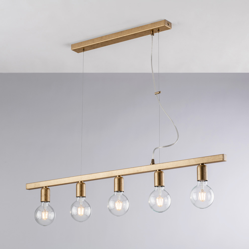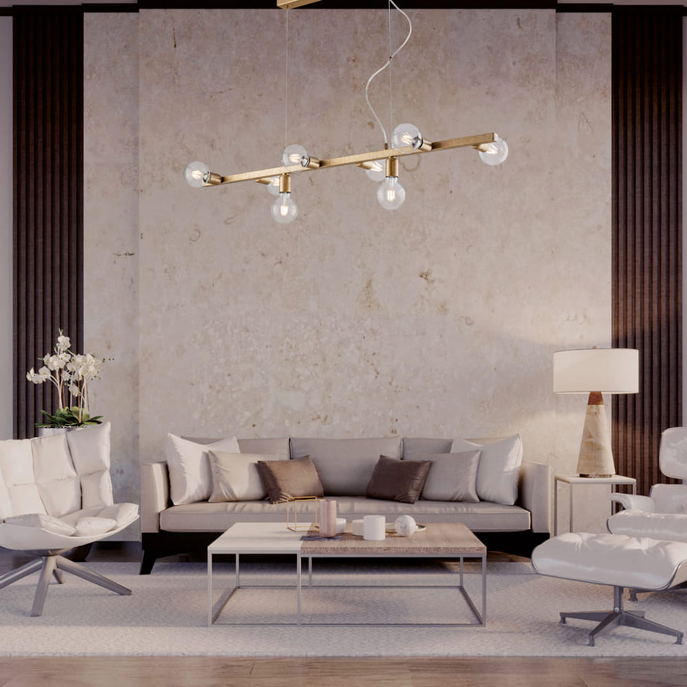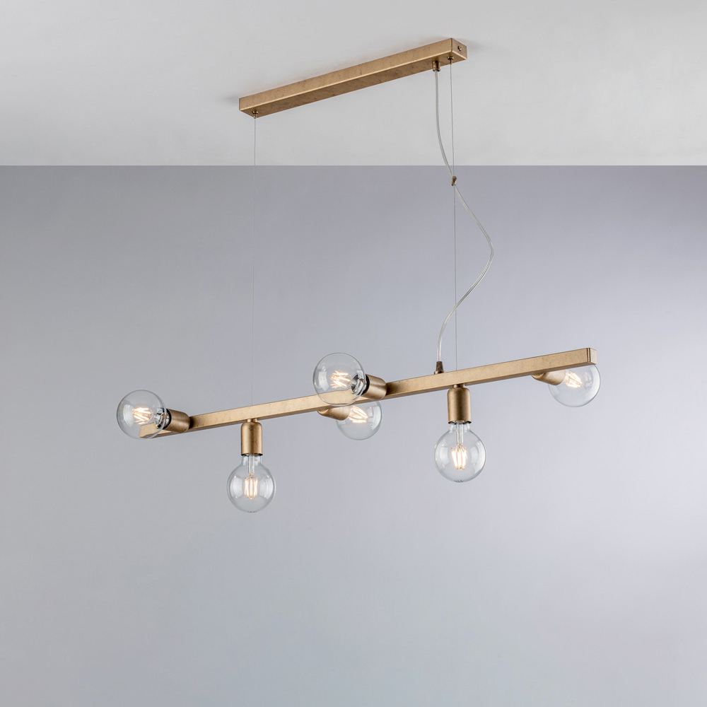 Diese handgefertigte Pendelleuchte aus Eisen besticht durch ihr geradliniges, modernes und elegantes Design und ist die ideale Beleuchtungslösung für zeitgemäße und stilvolle Räume. Die schlichte, harmonische horizontale Struktur beherbergt kugelförmige Glasdiffusoren , die ein diffuses, gleichmäßiges und zugleich stimmungsvolles Licht erzeugen.