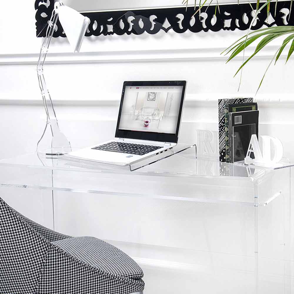 Es besteht aus transparentem oder geräuchertem Plexiglas aus 100% jungfräulichem Polymer und ist der perfekte Verbündete, um bequem von zu Hause aus zu arbeiten. Es kann sich als originelle Idee für Weihnachtsgeschenke für diejenigen präsentieren, die eine praktische und funktionale Designergänzung wünschen. Das Material, widerstandsfähig und von hoher Qualität, garantiert eine konstante Helligkeit und Brillanz über die Zeit.