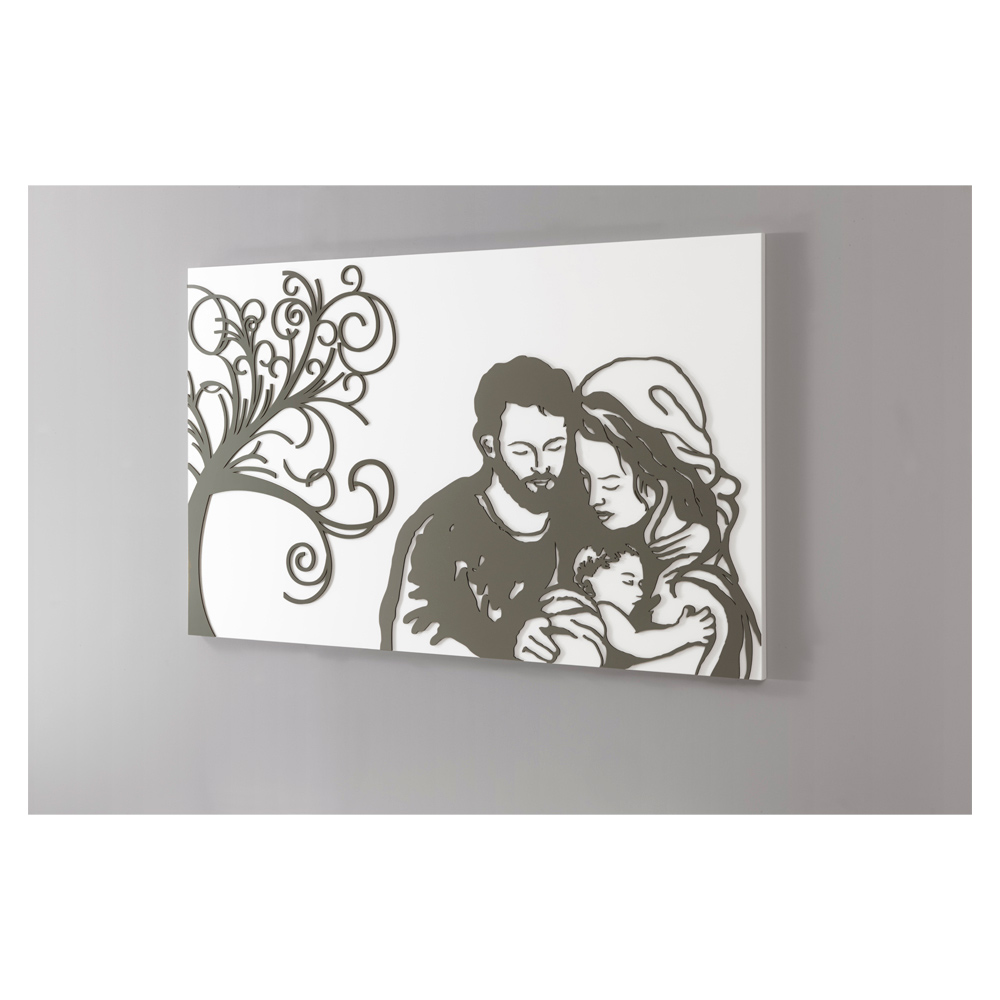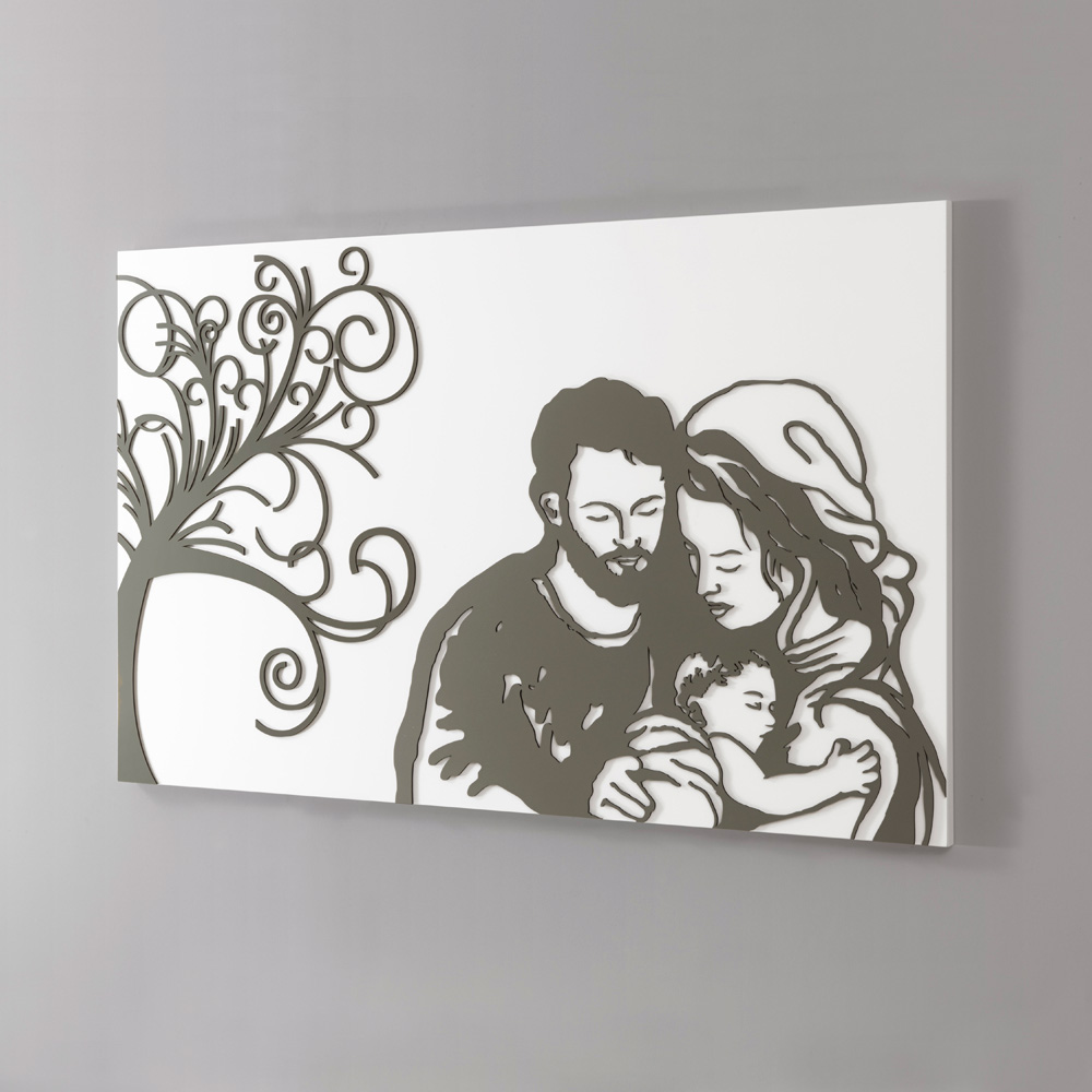 Dieses Gemälde ist das Ergebnis italienischer Handwerkskunst. Tatsächlich werden die Figuren von Hand gezeichnet und dann mit dem Licht des Laserstrahls bemalt, ohne jegliche Verschwendung und unter Berücksichtigung der Umwelt. Es soll die Süße der Familie in Kombination mit dem Symbol des Baumes des Lebens darstellen und bei denen, die es betrachten, starke und intensive Emotionen hervorrufen.