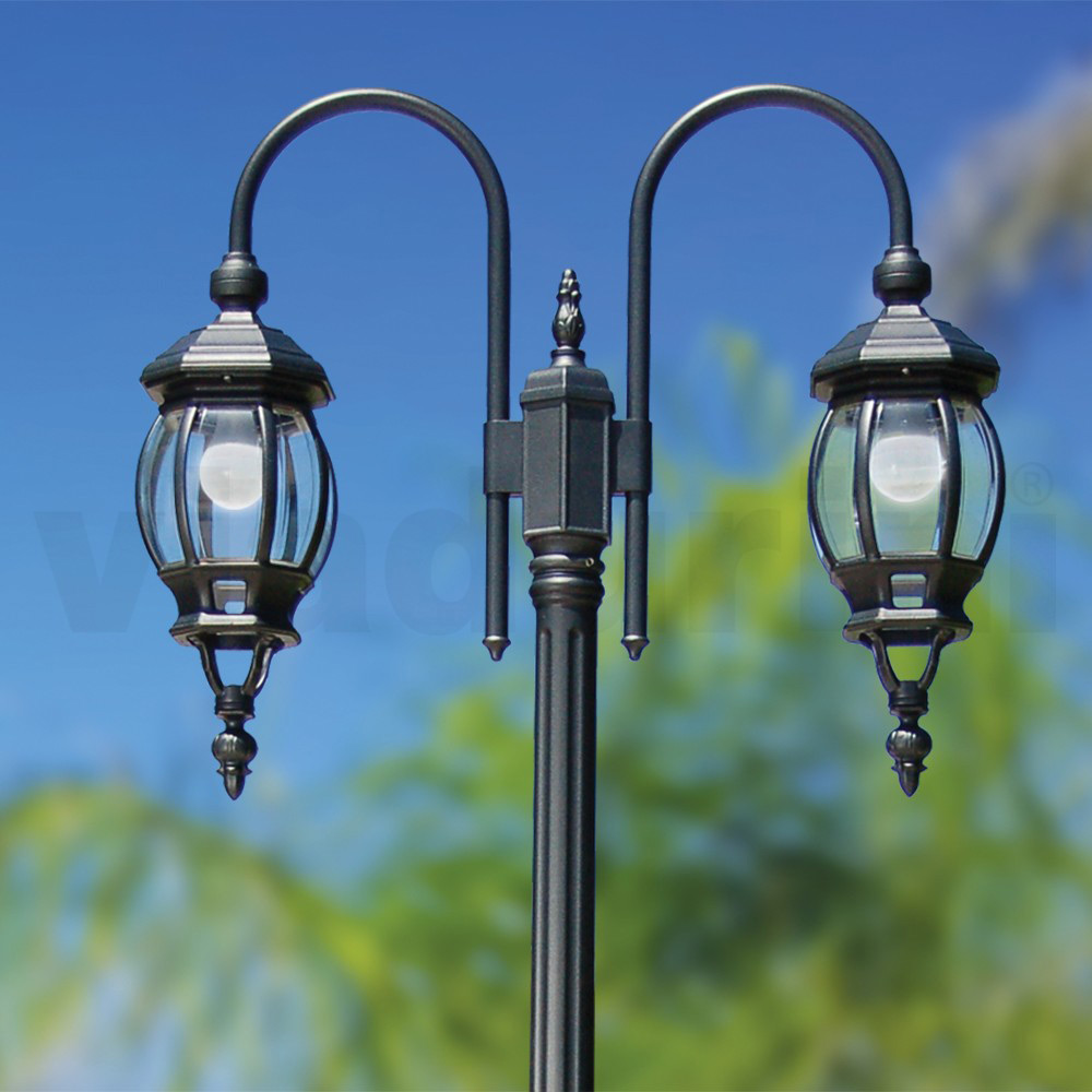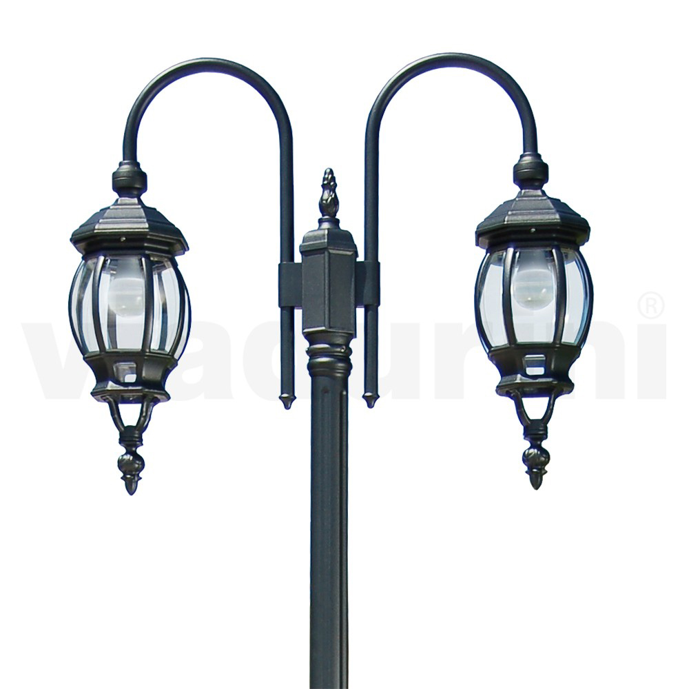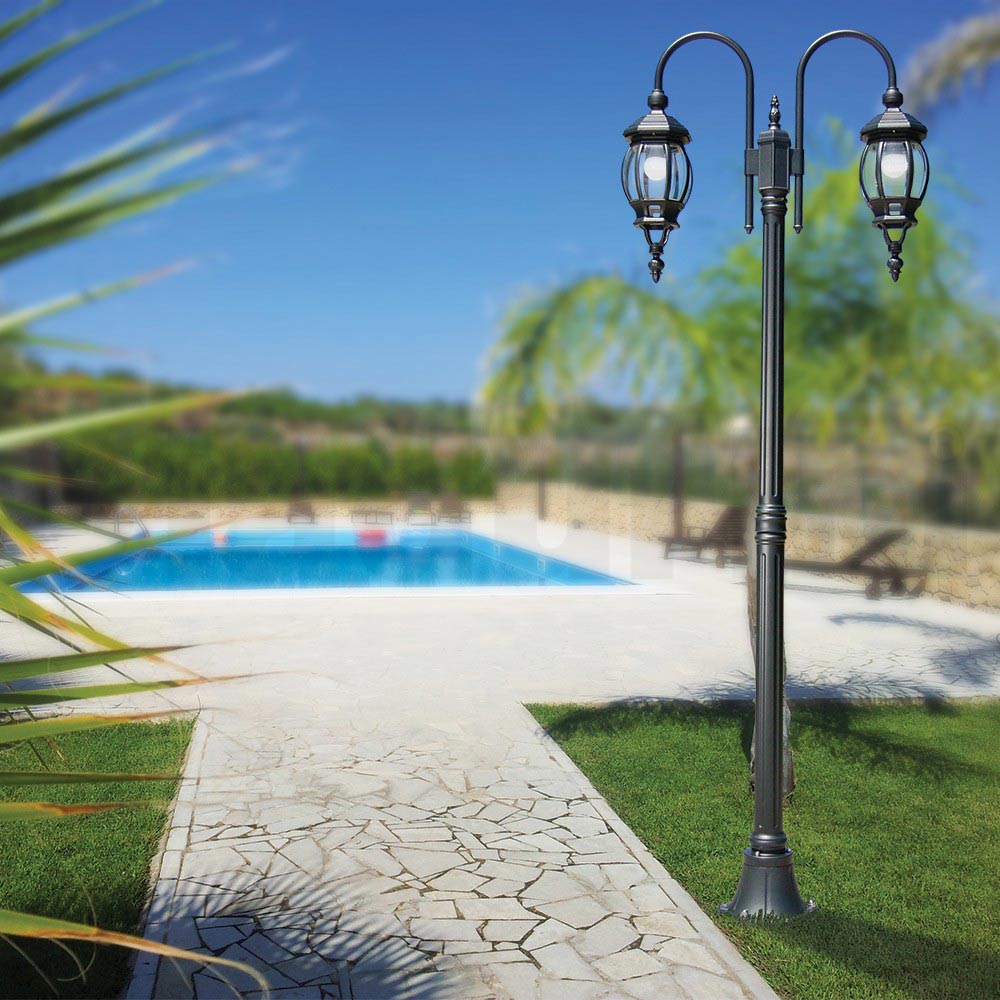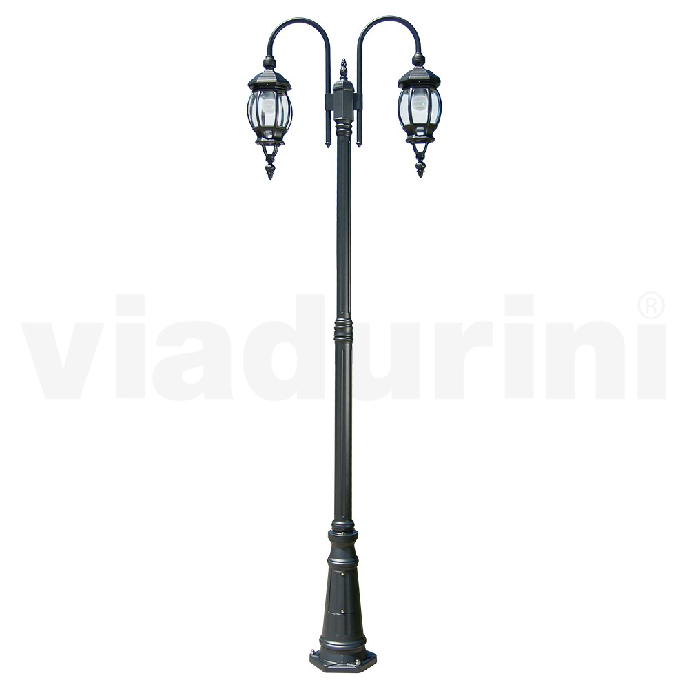 Laternenpfahl im Vintage-Stil, 2 Lichter, aus anthrazitfarbenem Aluminium, hergestellt in Italien – Empire