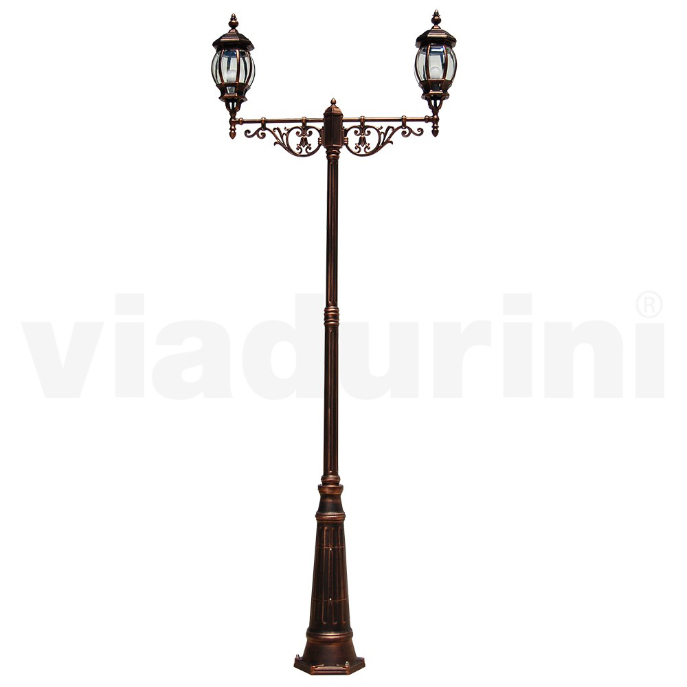 Laternenpfahl mit 2 Lichtern im Vintage-Stil aus Aluminium, hergestellt in Italien – Leona