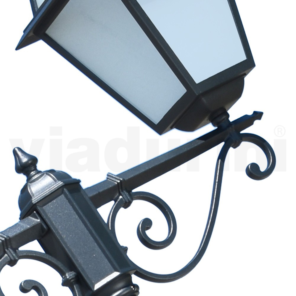 2-flammige Straßenlaterne aus Aluminium im Vintage-Stil mit Glasdiffusor, hergestellt in Italien.