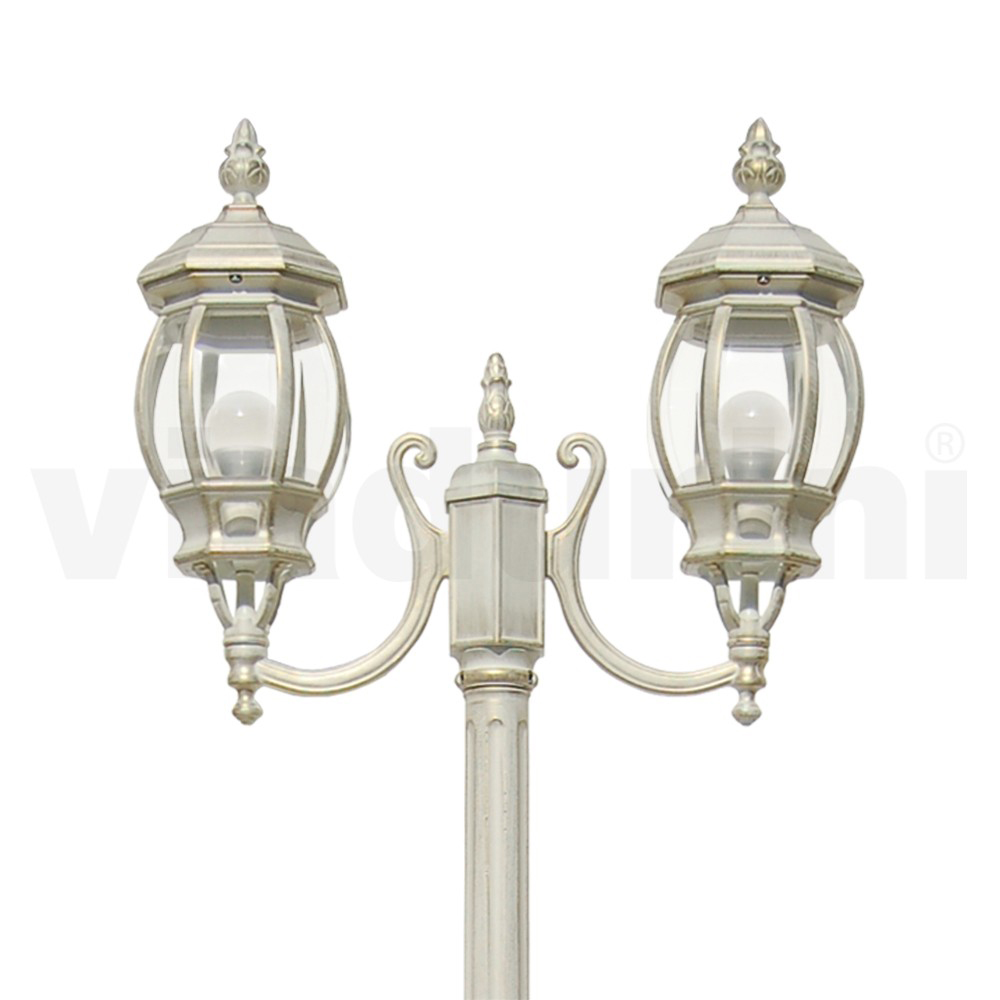 Laternenpfahl 2 Vintage-Gartenleuchten aus Aluminium und Polycarbonat, hergestellt in Italien.