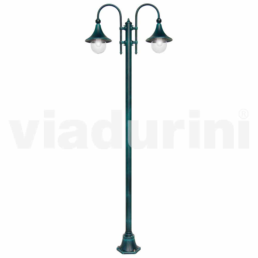 Zweiflammiger Außenlaternenpfahl aus Aluminium, hergestellt in Italien, Anusca Anusca ist eine geradlinige und schlichte Straßenlaterne für den Außenbereich mit zwei Lichtern, die in Handarbeit aus hochwertigen Materialien in Italien hergestellt wird: Struktur aus Aluminiumdruckguss und Diffusor aus Polycarbonat, erhältlich in den folgenden Varianten: transparent (garantiert eine optimale und stets homogene Lichtstreuung), opal und rauchfarben.