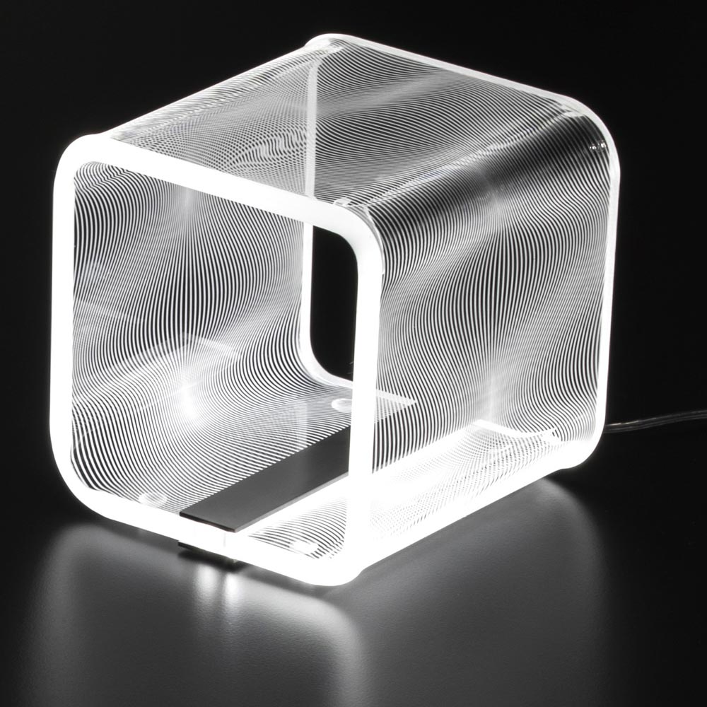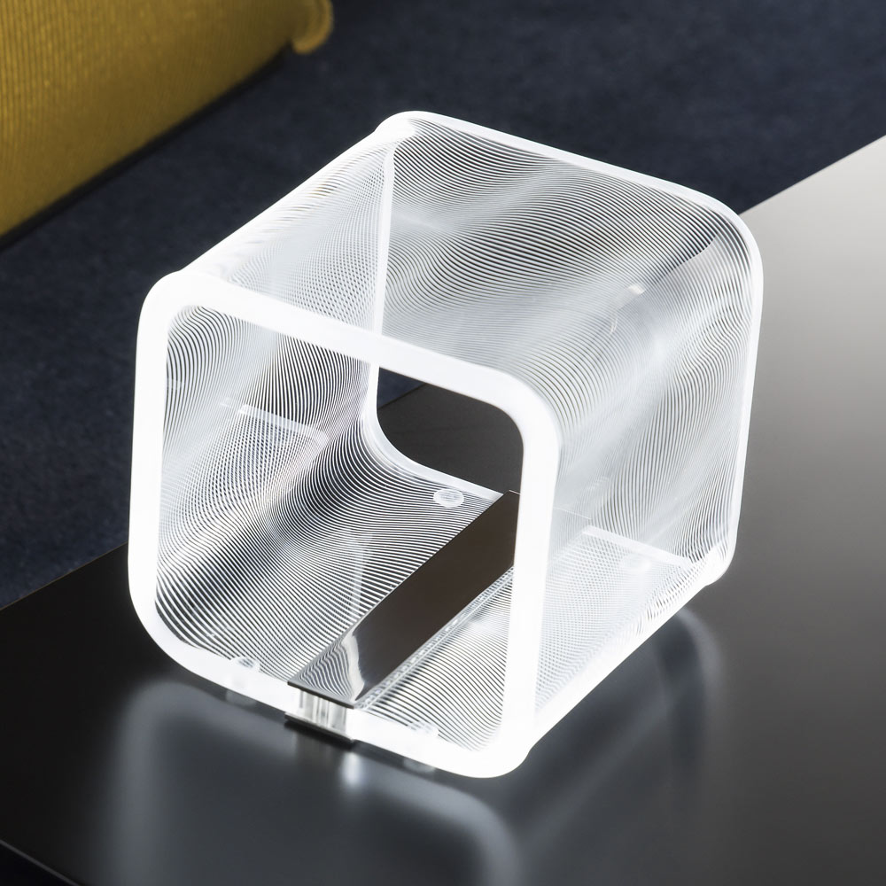Quadratische LED-Streifen-Tischlampe aus transparentem Acryl 2 Größen, hergestellt in Italien.