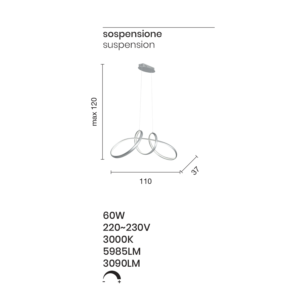 - L 110 x P 37 x H max 120 cm (LED 60W 220-230V 3000K 5985LM).