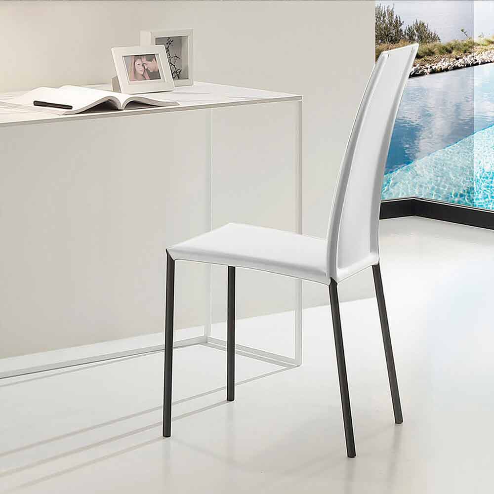 Küchenstuhl aus Leder und lackiertem Metall Made in Italy, 2 Stück.