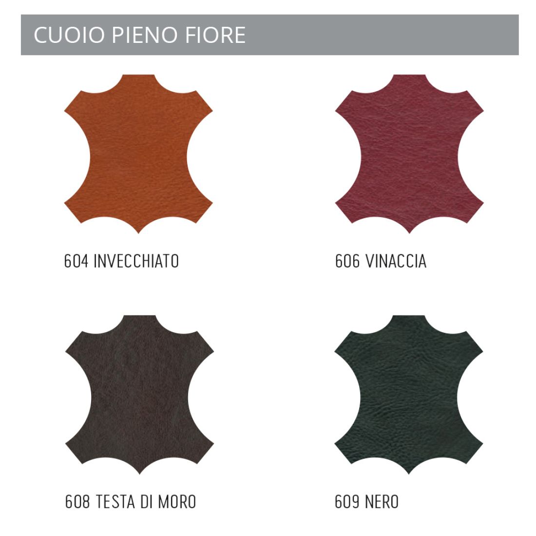 Zeigen Sie die Farbkarte an, die der gewünschten Ledersorte entspricht, und geben Sie den Code der von Ihnen ausgewählten Farbe in das entsprechende Feld ein.