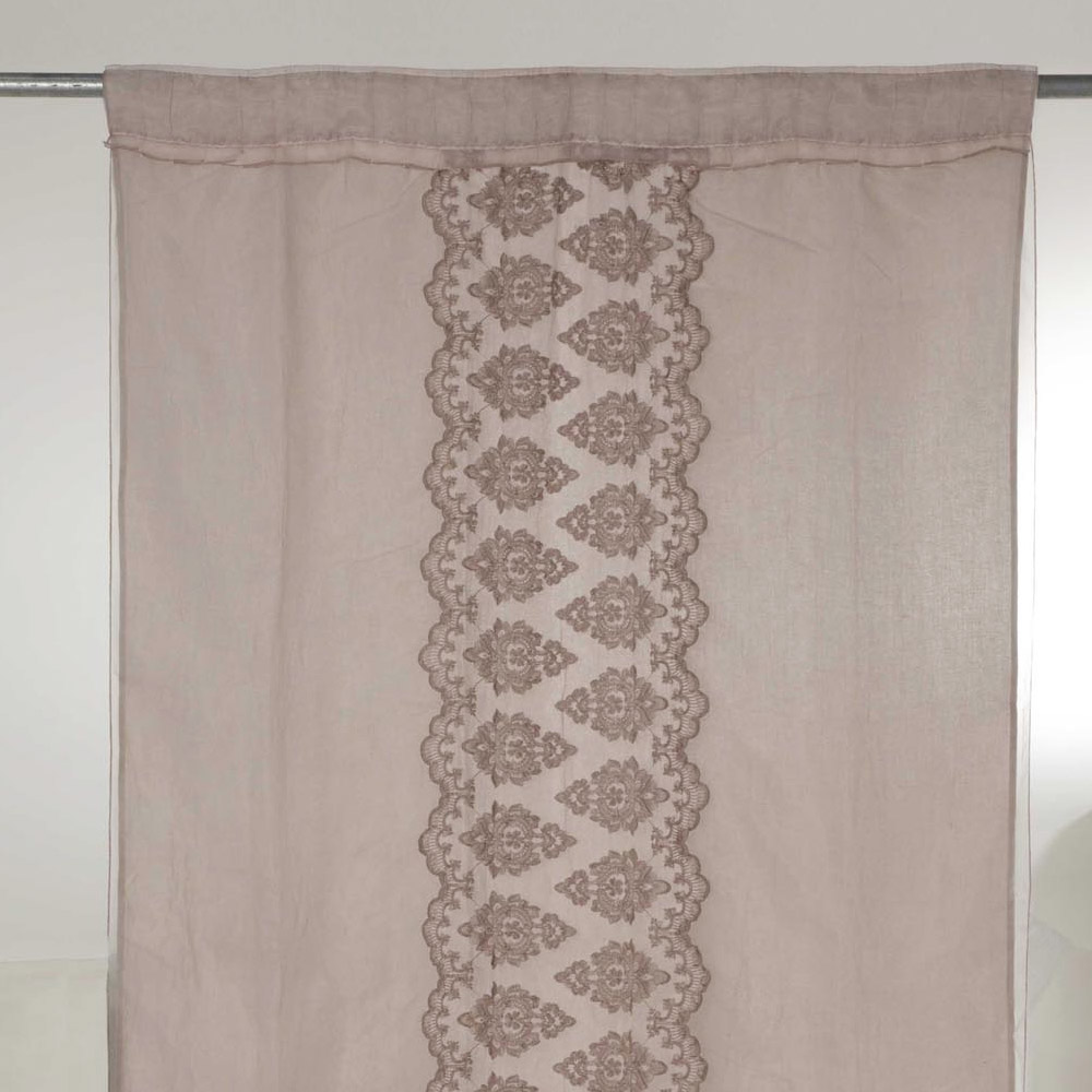 Der Wert der Tradition verbindet den modernen Lebensstil mit diesem Vorhang aus hellem Leinen und Organza in der Farbe Altpuderrosa und vertikaler gotischer Stickerei im Mittelteil und Veranlagung für einen Stock mit Organza-Dekoration im Oberteil.