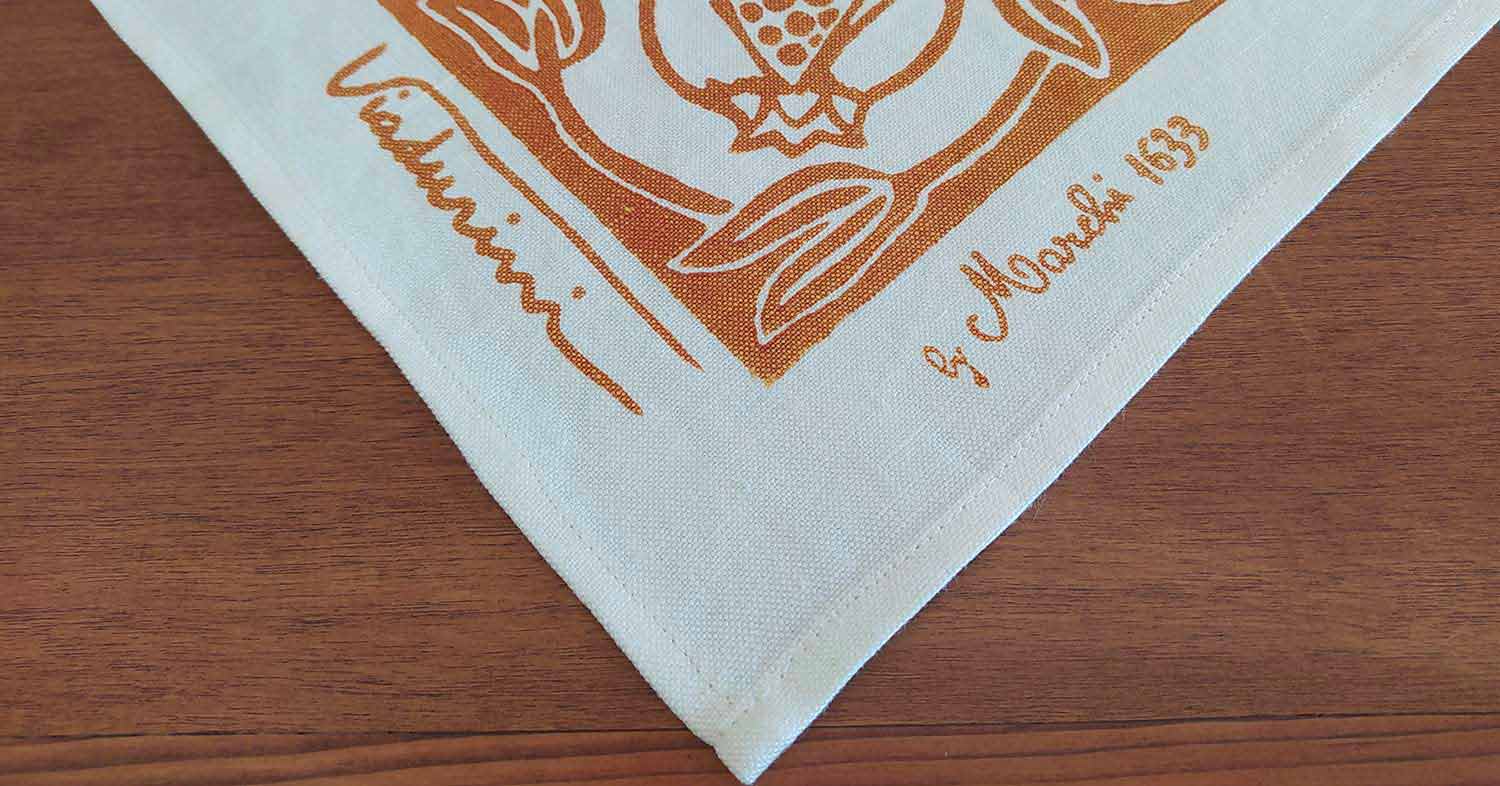 - 3 mögliche Drucke verfügbar: Blau mit altem Granatapfel- Design , ein Symbol für Fülle und Wohlstand; Rost, mit alter traditioneller Zeichnung von Uccellino, die Trauben pickt ; Rust, mit altem Design des malatestianischen Liebesknoten (eine italienischen Adelsfamilie , dass Mark der Geschichte des Territoriums), ein Symbol für ihre unauflösliche Bindung.