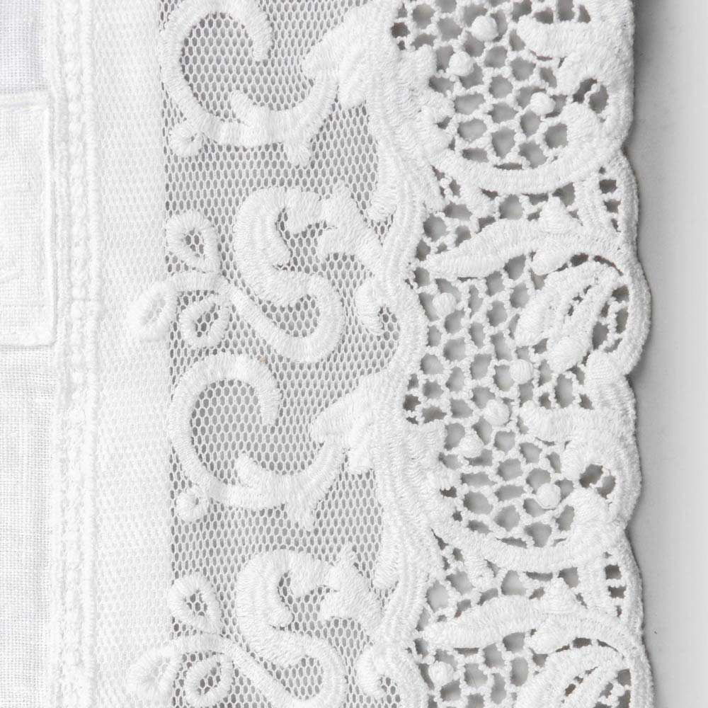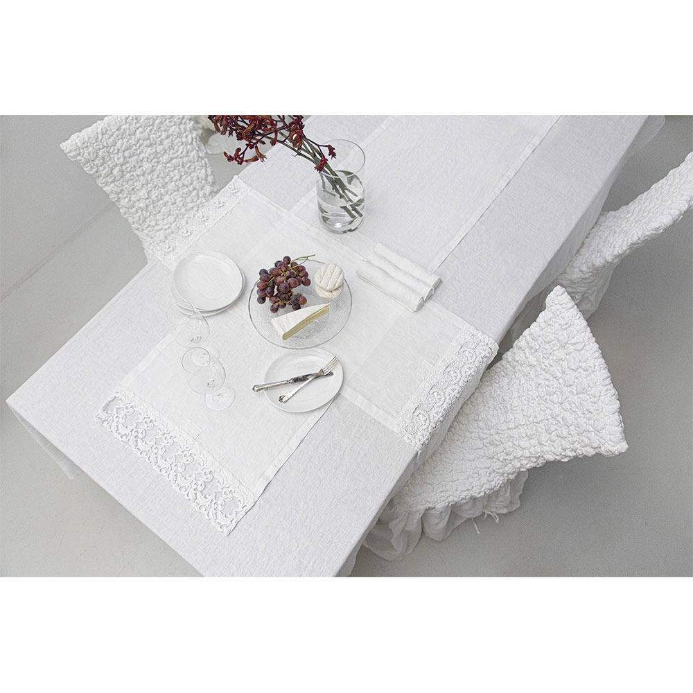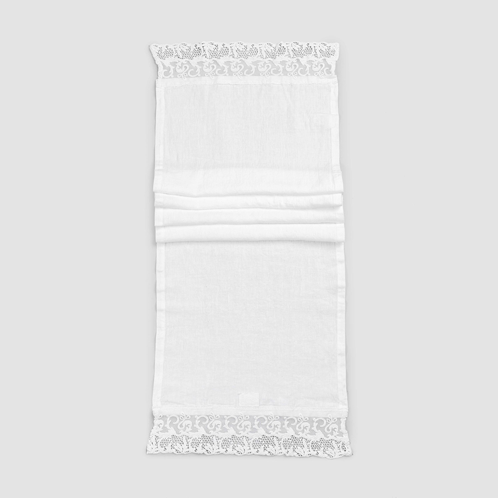 Leinen Tischläufer mit weißer Spitze, italienische Luxusqualität - Farnese
