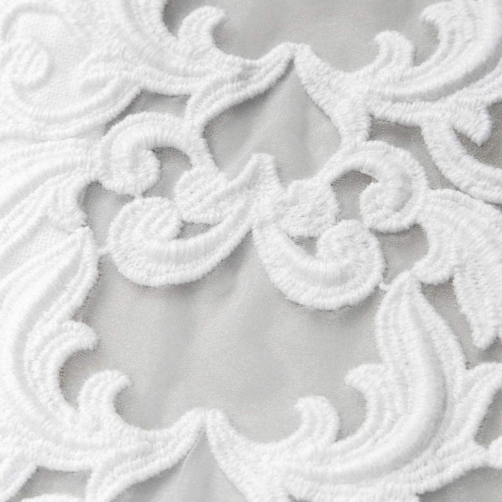 • mit Farnese-Spitze: 100% Polyester und Stickerei aus 75% Baumwolle und 25% Polyamid