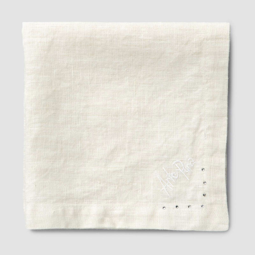 Der Wert der Tradition verbindet den modernen Lebensstil mit dem Service von 6 Servietten aus schwarzem Leinen oder Butter, angereichert mit kostbaren Kristallen für ein elegantes und luxuriöses Design.