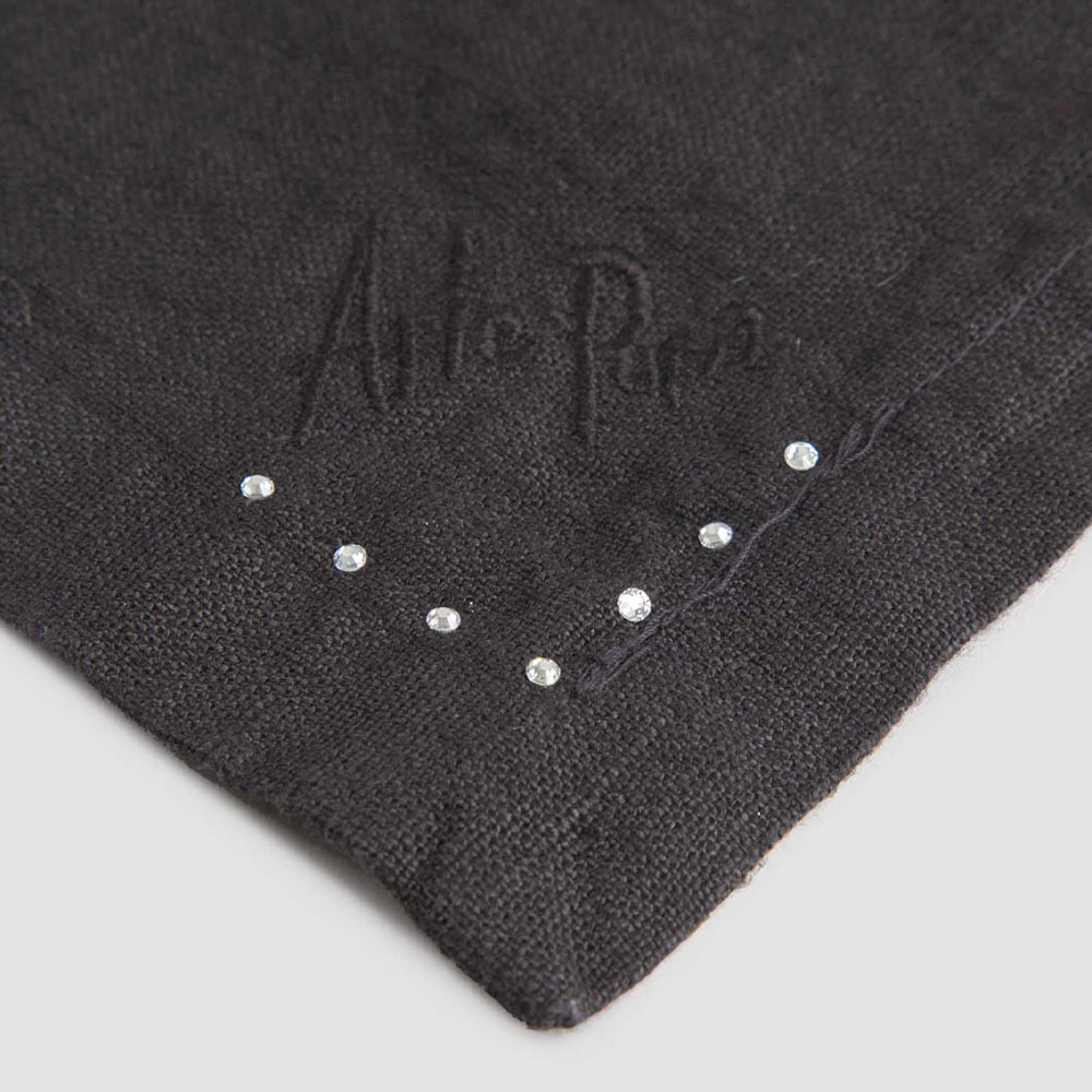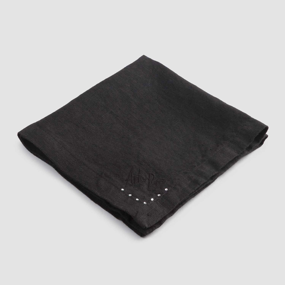 Serviette in schwarzem Leinen oder Butter mit Kristallen, 6 Luxusstücke made in Italy.
