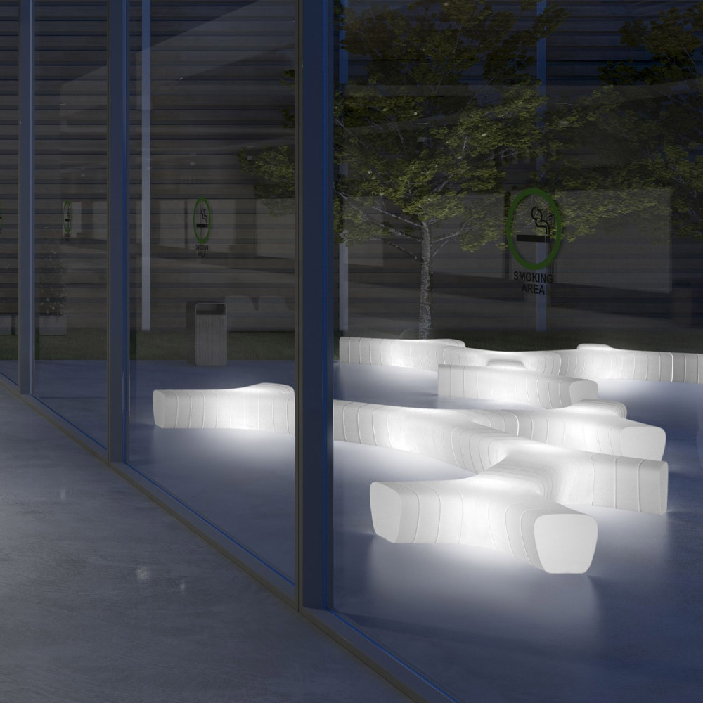 Leuchtbank für den Außenbereich vollständig in Italien hergestellt aus undurchsichtigem Polyethylen, komplett mit LED-Beleuchtungsset . Ein Möbelstück, das entworfen und konzipiert wurde, um große Außenbereiche einzurichten. Seine Form ist ideal, um gegliederte und dynamische Kompositionen zu schaffen, indem mehrere Elemente kombiniert werden, um bequeme und bequeme Sofas zu schaffen. Die Oberfläche zeichnet sich durch Rillen aus, die zusammen mit wunderbaren Licht- und Schatteneffekten eine elegante Strukturierung erzeugen und so eine zarte und einladende Atmosphäre schaffen . Sie vermitteln auch ein Gefühl von Kontinuität, wenn mehrere Module nebeneinander angeordnet werden, und schaffen so eine perfekte Lösung für die Einrichtung großer Außenbereiche mit Persönlichkeit und Stil. Komplett mit Befestigungssatz .