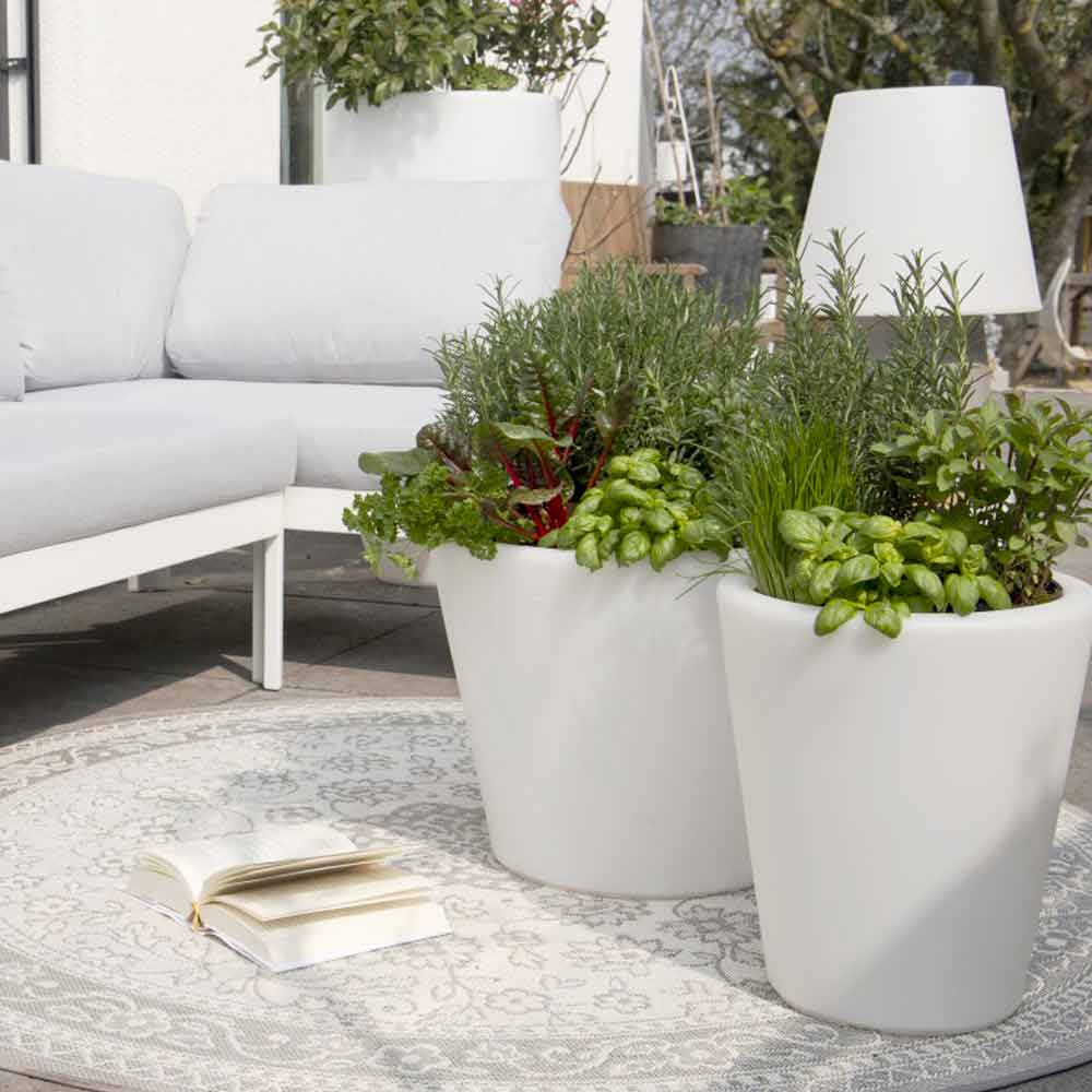 Helle Vase für Innen- oder Außenbereiche in farbenfrohem und modernem Design mit E27-Anschluss in verschiedenen Größen.