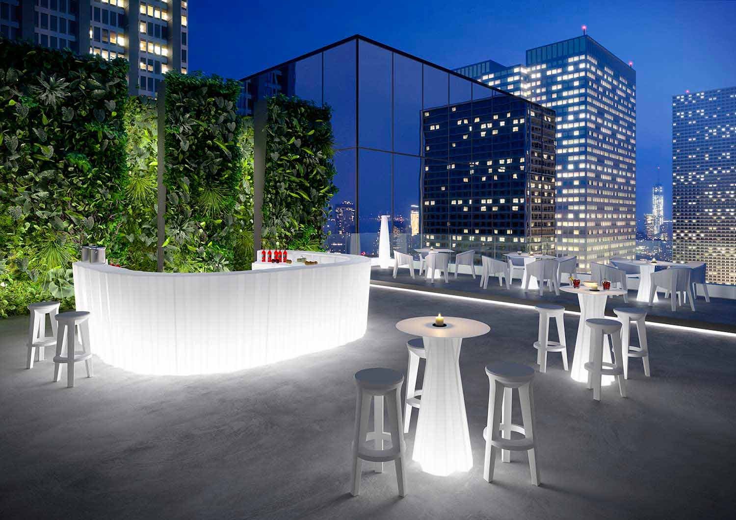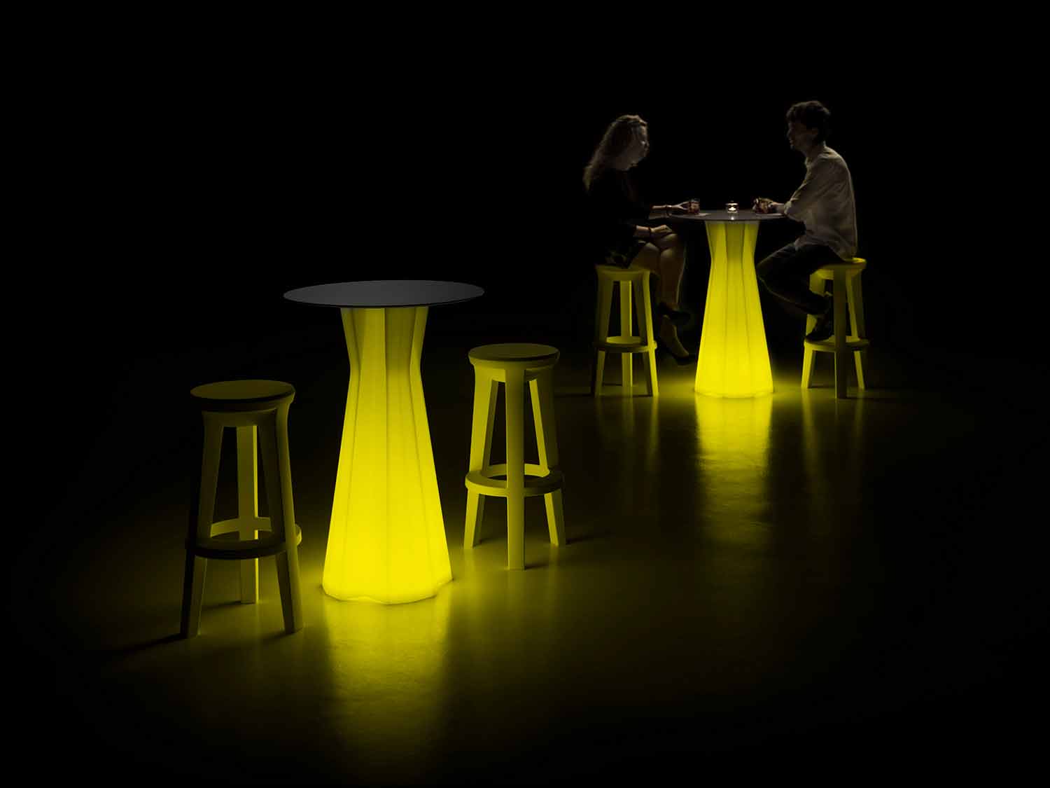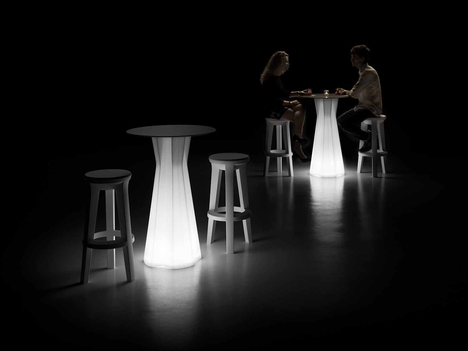 Hochwertiger Außentisch aus HPL und Polyethylen mit RGB-LED-Licht Made in Italy.