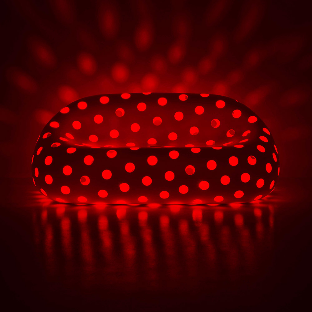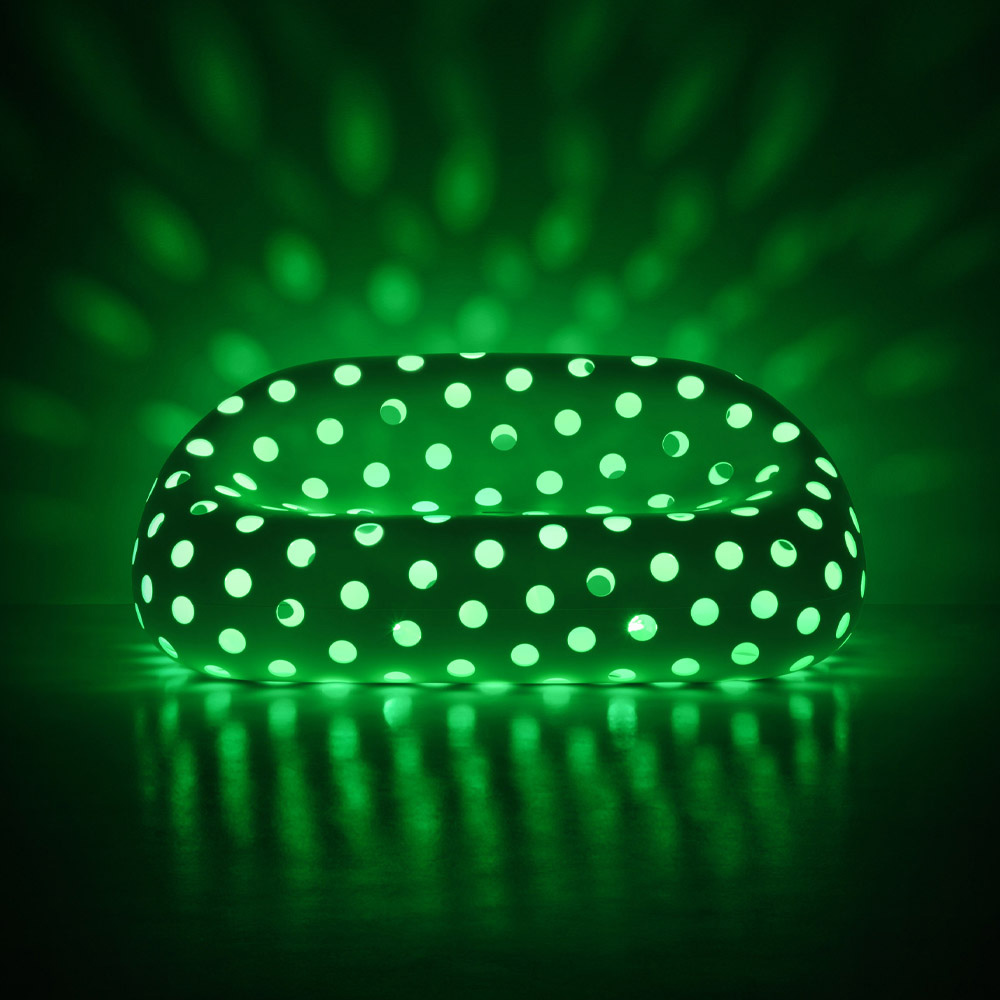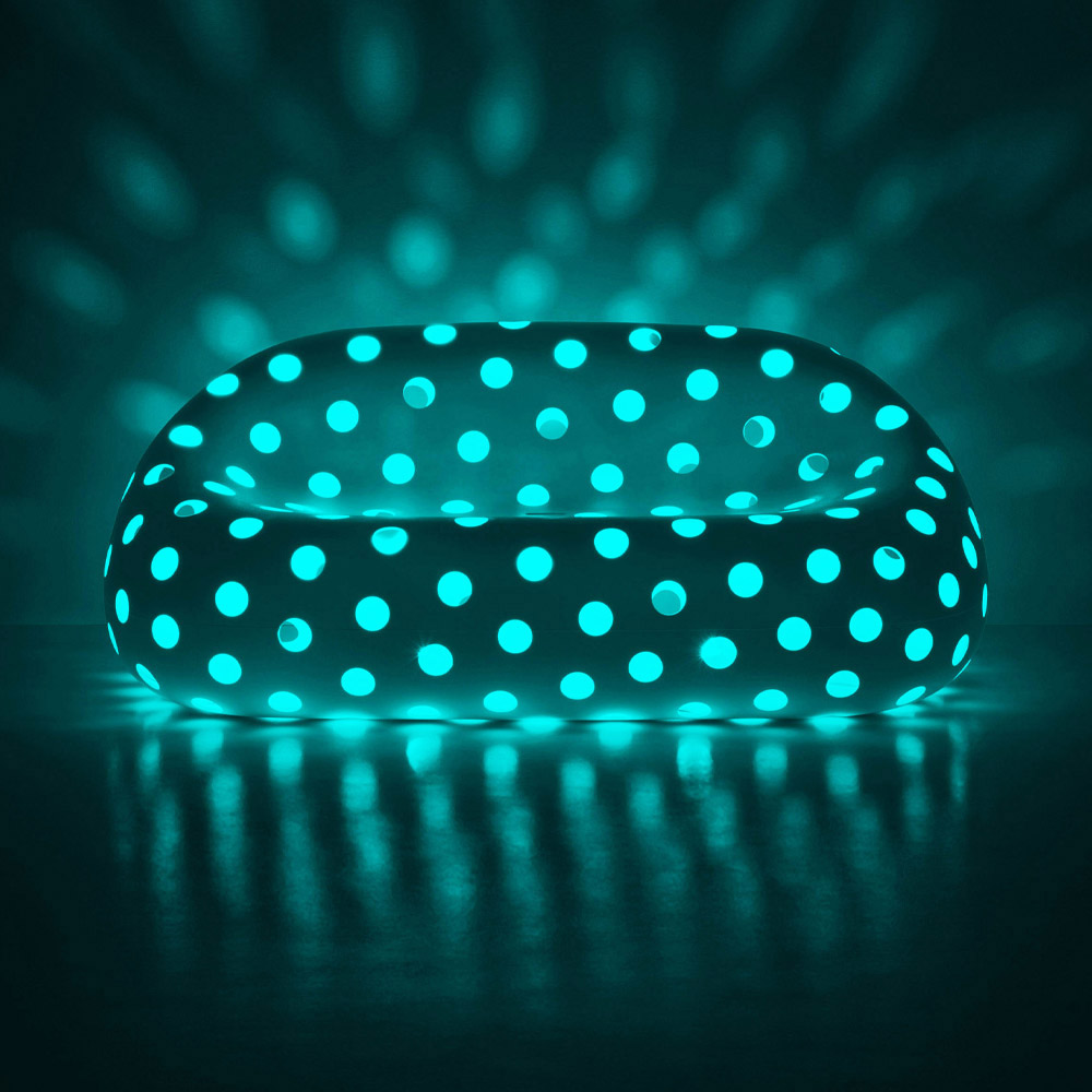 In Italien hergestelltes Gartensofa aus undurchsichtigem weißem Polyethylen, komplett mit farbigem RGB-LED-Beleuchtungsset für den Außenbereich. Eine originelle Einrichtungsidee, deren Figur sich durch komfortable und moderne Linien auszeichnet, die zusammen mit LED-Beleuchtung die perfekte Kombination aus Funktionalität und Design werden lassen . Seine matte Oberfläche macht es besonders widerstandsfähig gegen Sonne, Stöße und Hitze sowie äußerst elegant und mit einer raffinierten Ästhetik. Das einzigartige und innovative Design , das die Formen betont, hat eine große szenische Wirkung und macht es ideal für Außenumgebungen, die eine Einrichtungslösung mit starker Persönlichkeit benötigen. Die perforierte Oberfläche verleiht dem Sofa eine noch nie dagewesene Leichtigkeit und erzeugt dank der eingesetzten Lichtquelle spektakuläre Lichtspiele.