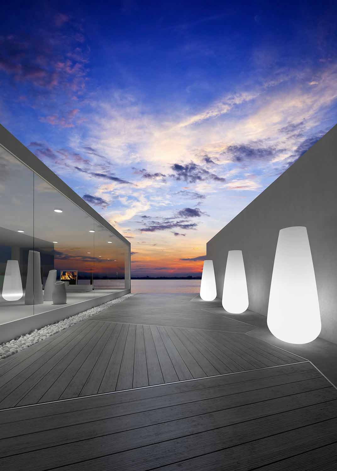 Große dekorative Designvase aus Polyethylen für den Außenbereich mit LED-Licht Made in Italy.