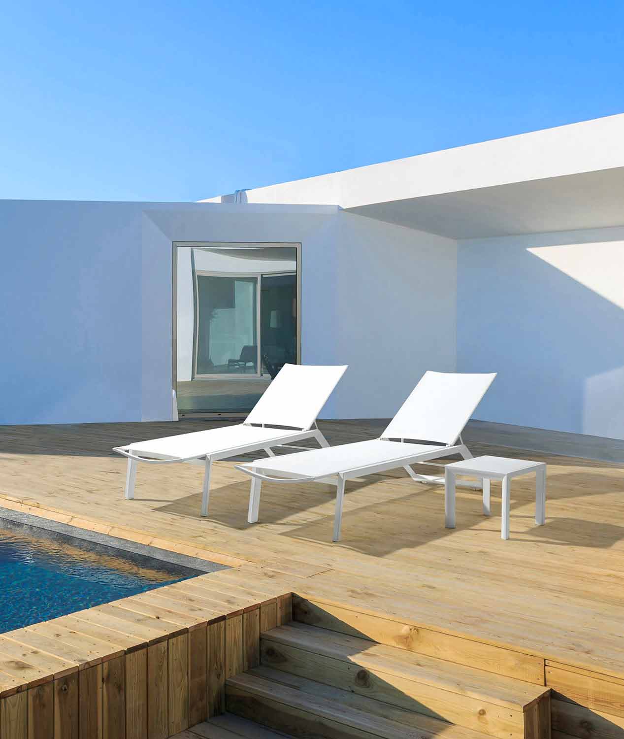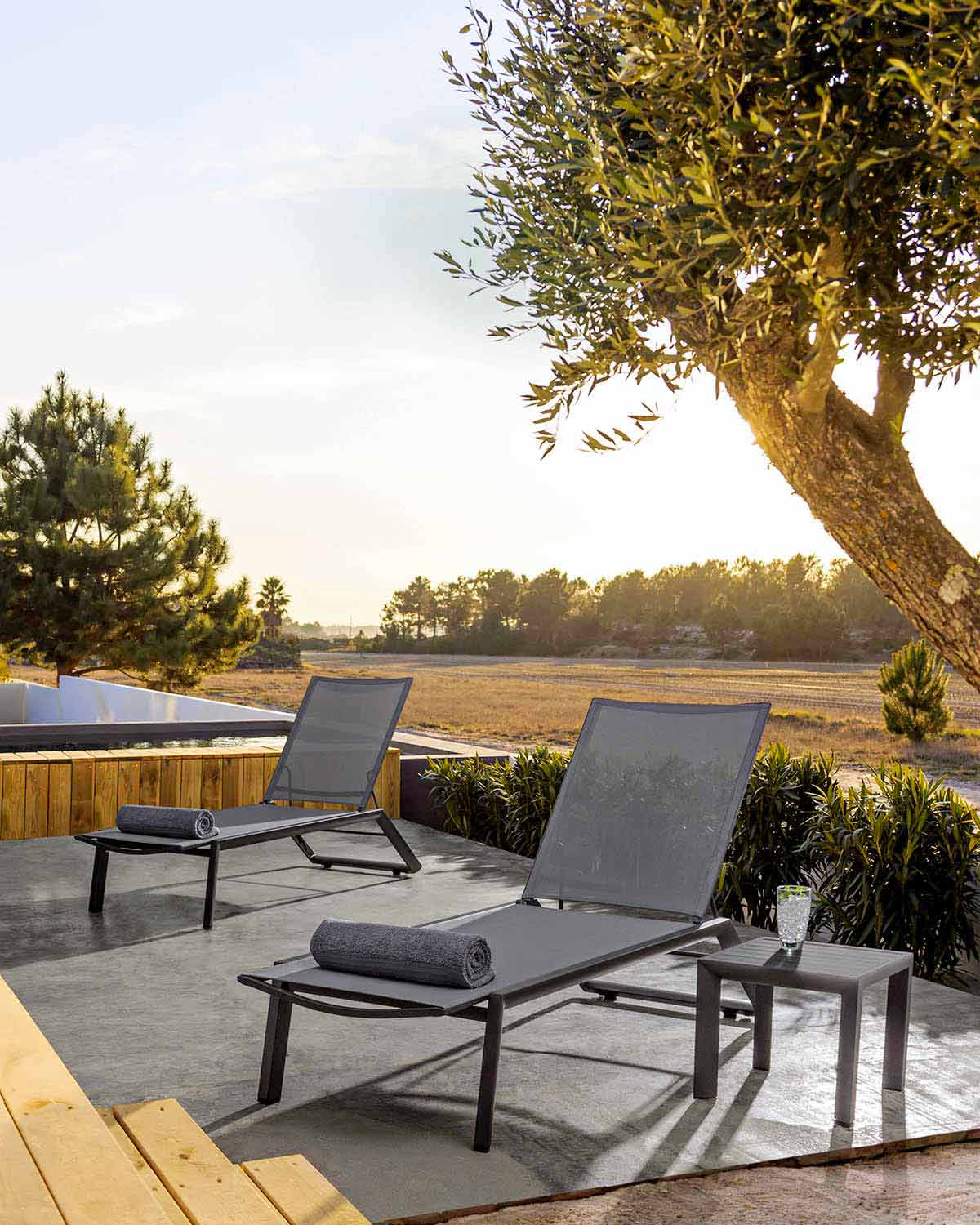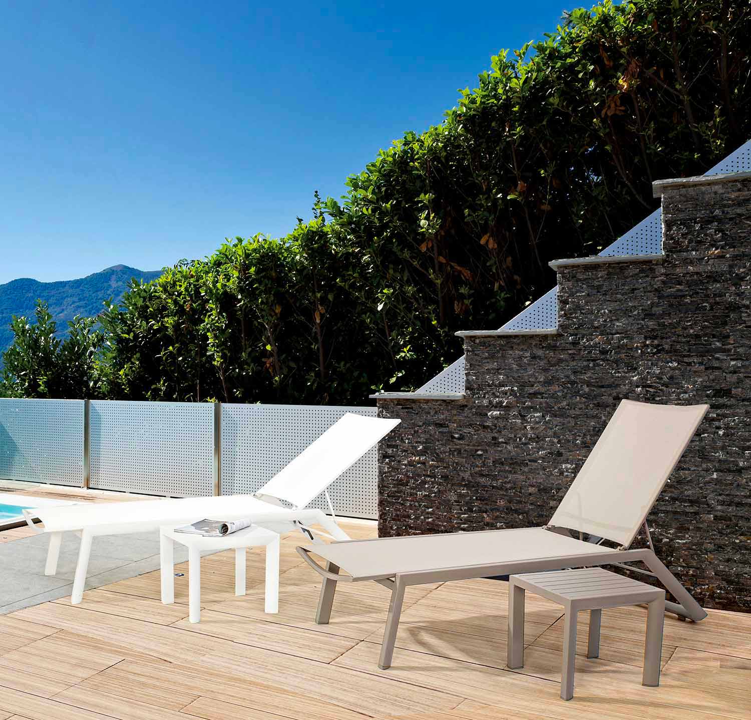 Liegende Chaiselongue im Freien mit Rädern, Aluminium und Textilien - Juwel
