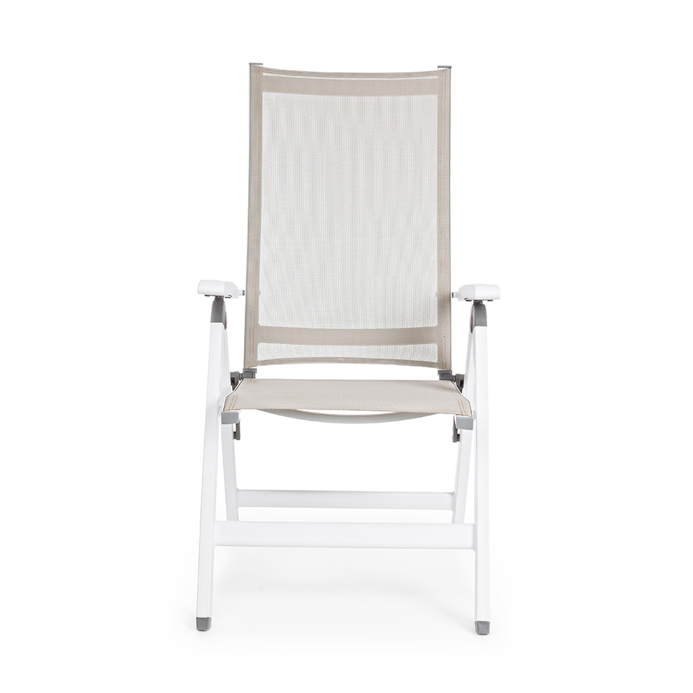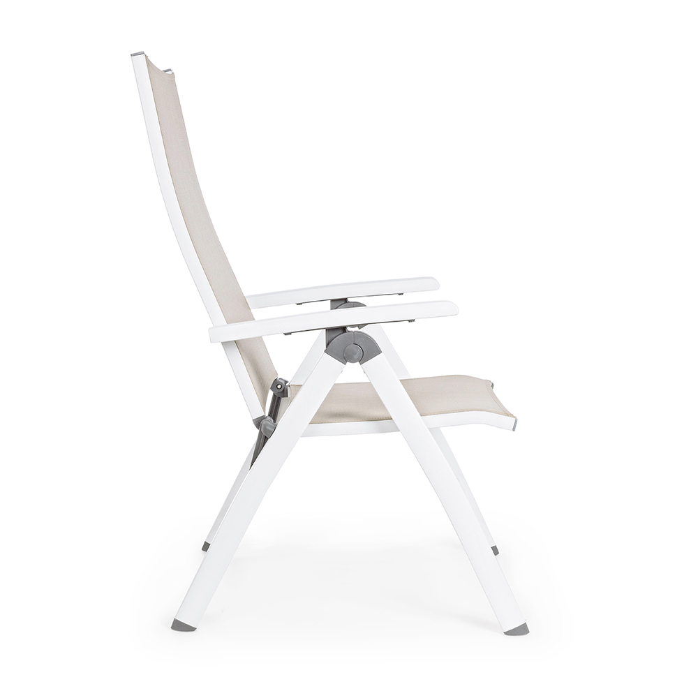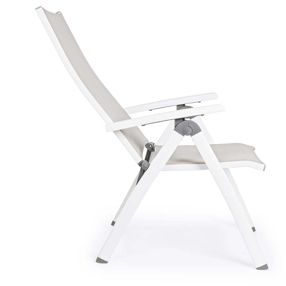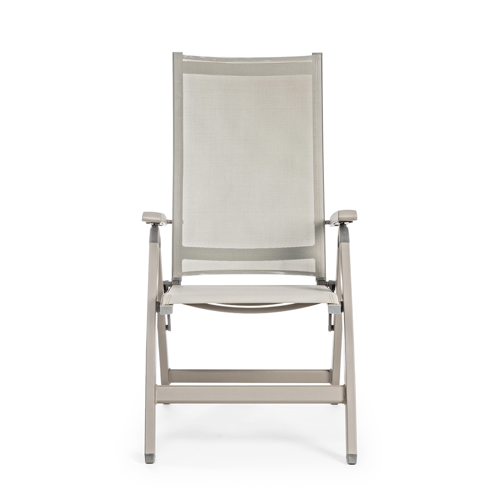 Klappbarer Outdoor-Sessel aus Aluminium und Textilien.