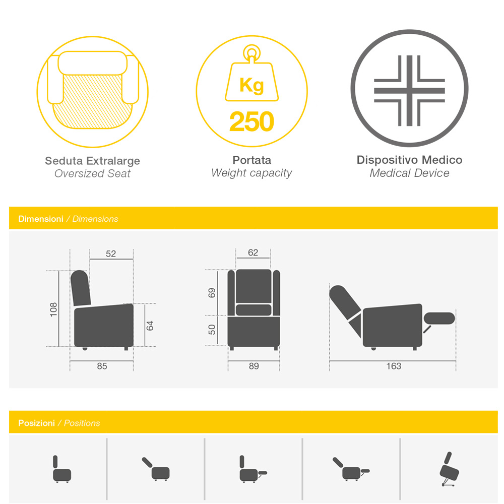 Lift-Sessel mit extra großem Sitz aus Made in Italy-Stoff – Margaret
