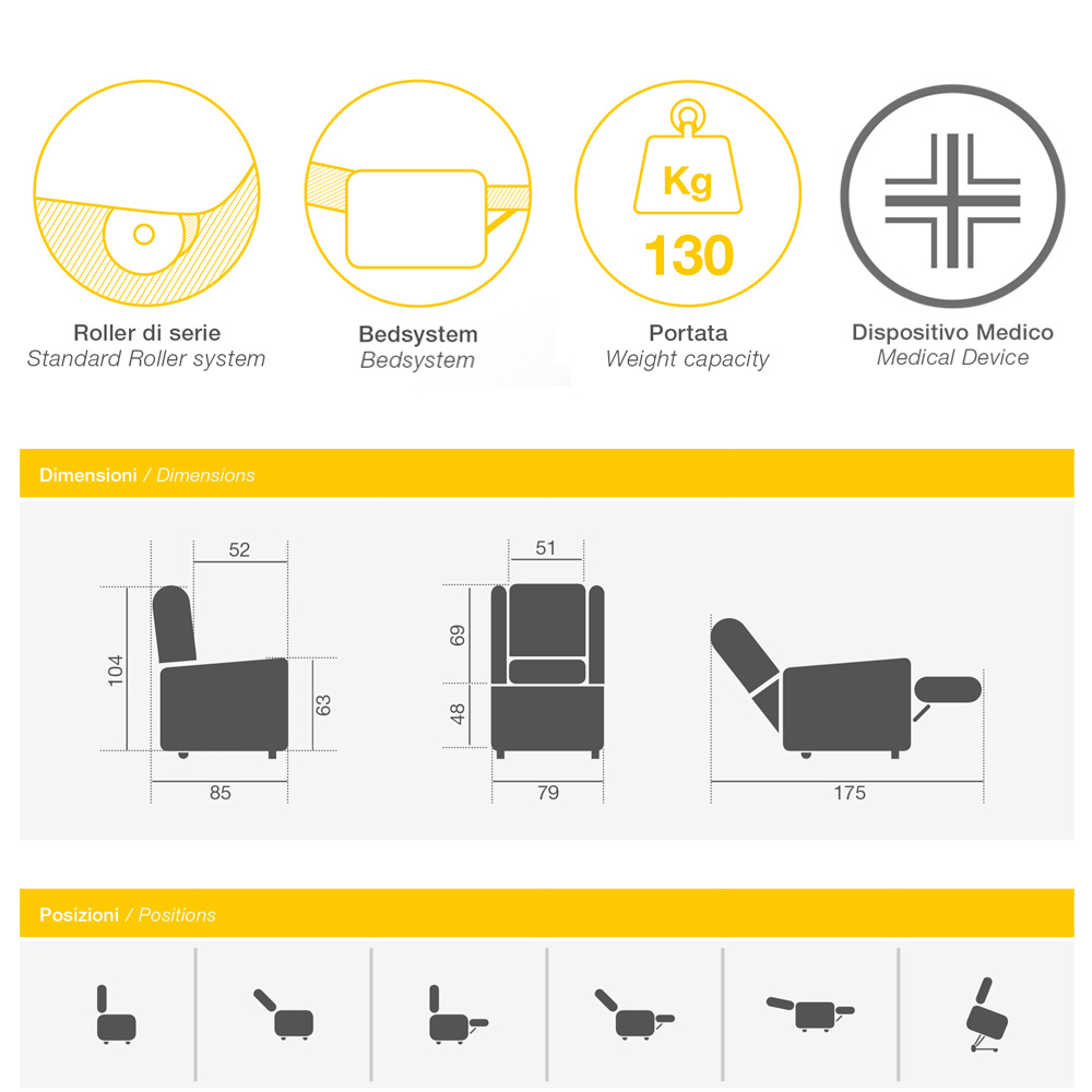 Lift-Sessel mit Lift-, Relax- und Bettfunktion, hergestellt in Italien – Talita
