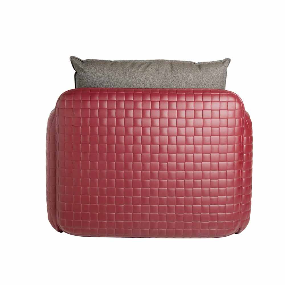 Der Sessel MARA, Design von Lorenza Bozzoli, ist ein Produkt Made in Italy . Die Textur seiner Struktur wurde sowohl für den Innen- als auch für den Außenbereich entwickelt und erinnert an die Handwerkskunst von gewebtem Leder, die sich in der gesamten Textur fortsetzt. Es passt gut zu den wasserdichten und austauschbaren Stoffkissen , der bequeme Sitz macht Mara ideal für Objektprojekte auf Dächern, Gärten und Innenräumen.