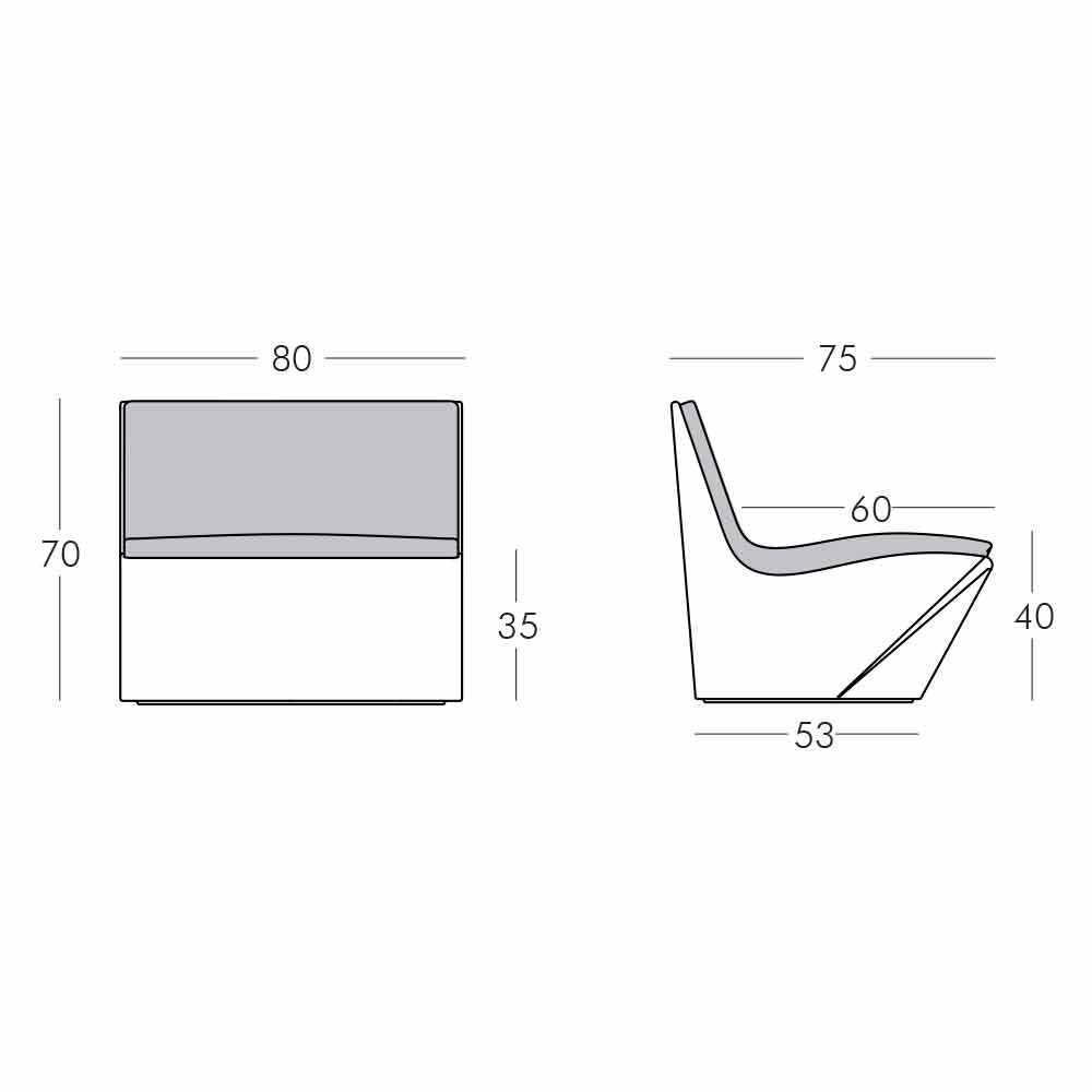 Kami Ichi aus Polyethylen ist in der Standardversion in dreizehn verschiedenen Farben erhältlich. Es passt sich sowohl Innen- als auch Außenmöbeln an und bietet die Möglichkeit, auch Kissen aus Polyurethan zu erwerben, die in drei verschiedenen Farben erhältlich sind: