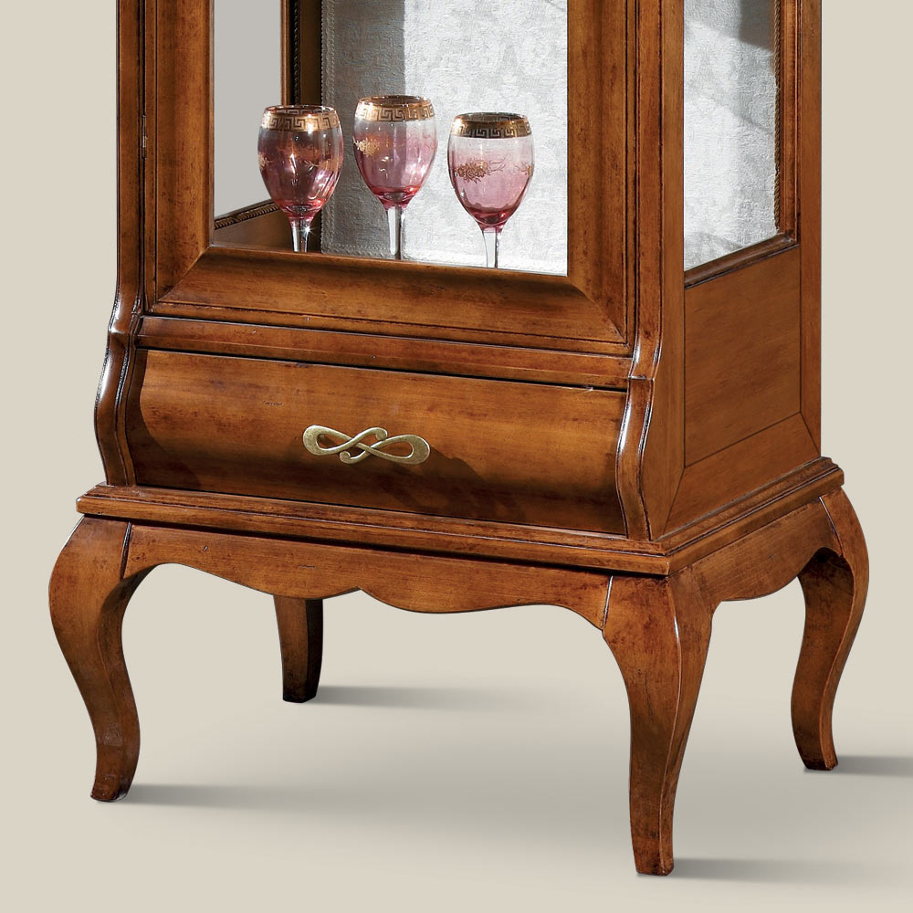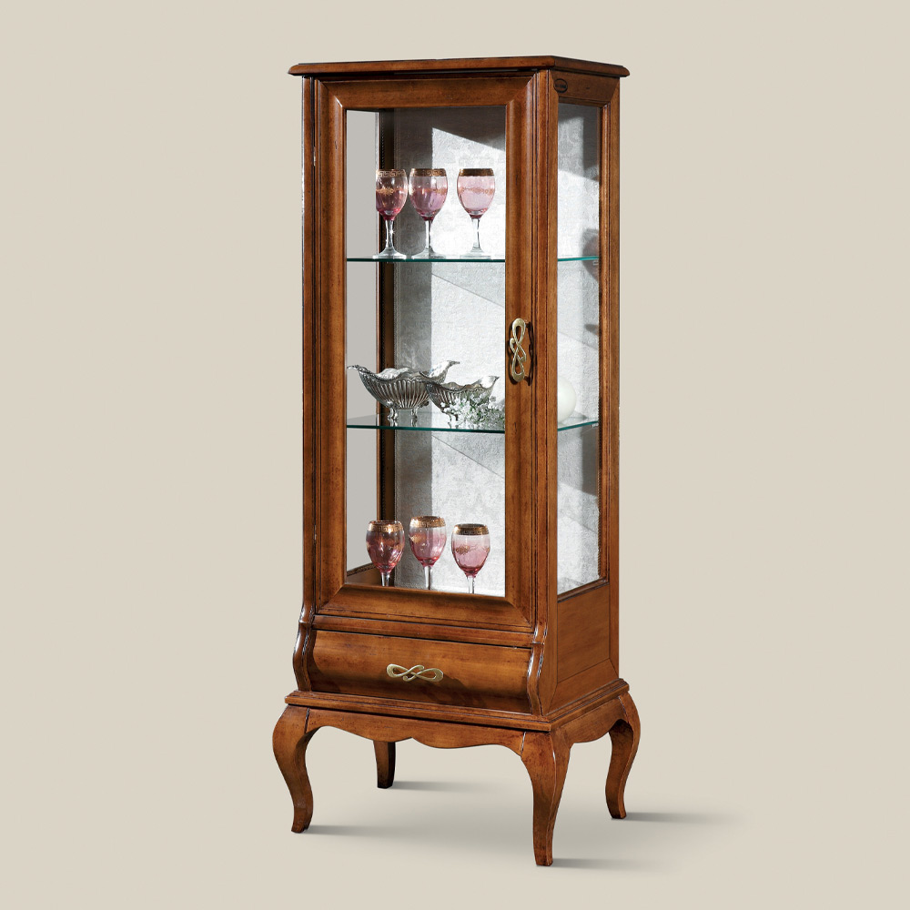 Klassische Vitrine mit Tür und Schublade aus weißem Holz Made in Italy.