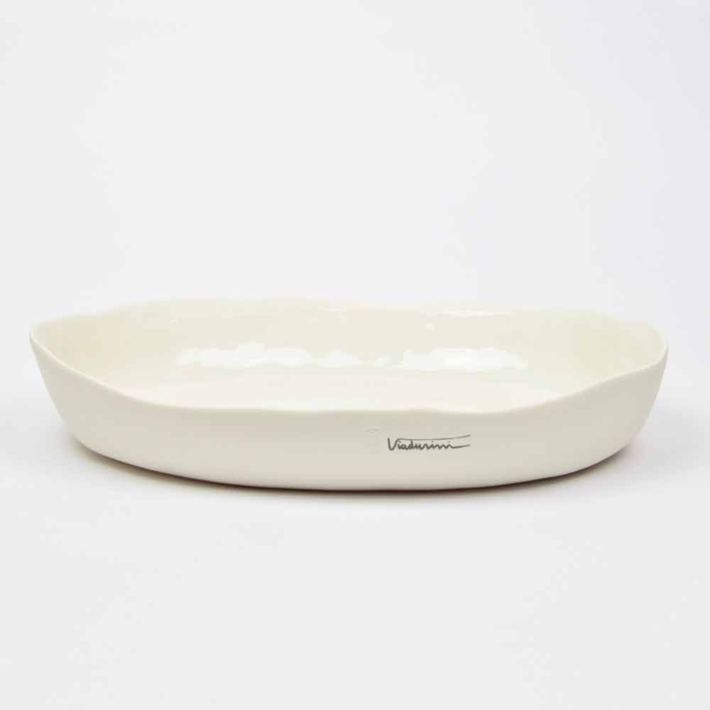 Ovaler Servierteller aus weißem Porzellan, luxuriöses Design-Einzelstück, handgefertigt in Italien.