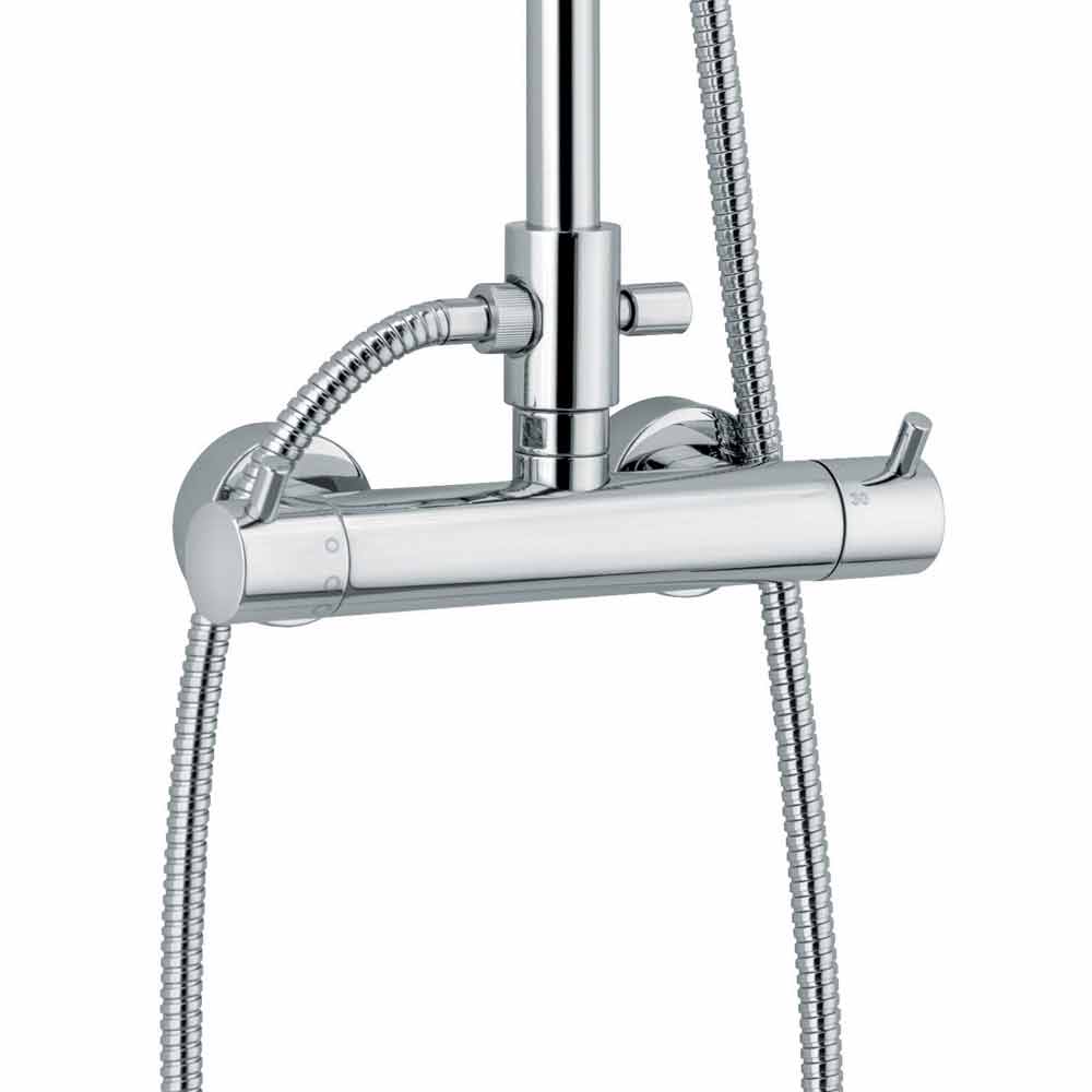 Moderne Duschsäule aus verchromtem Messing mit Thermostatmischer Made in Italy.