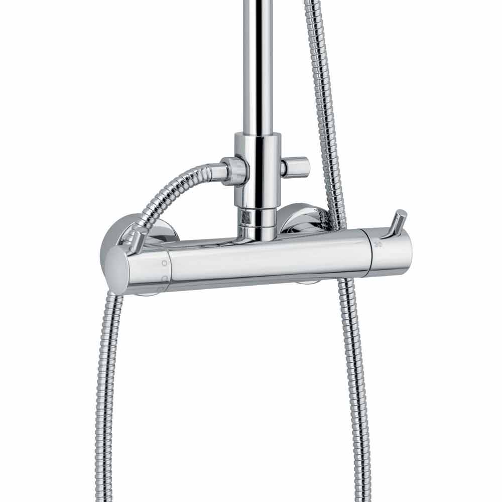 Duschsäule mit Thermostatmischer aus verchromtem Messing mit Zubehör aus Edelstahl und ABS .