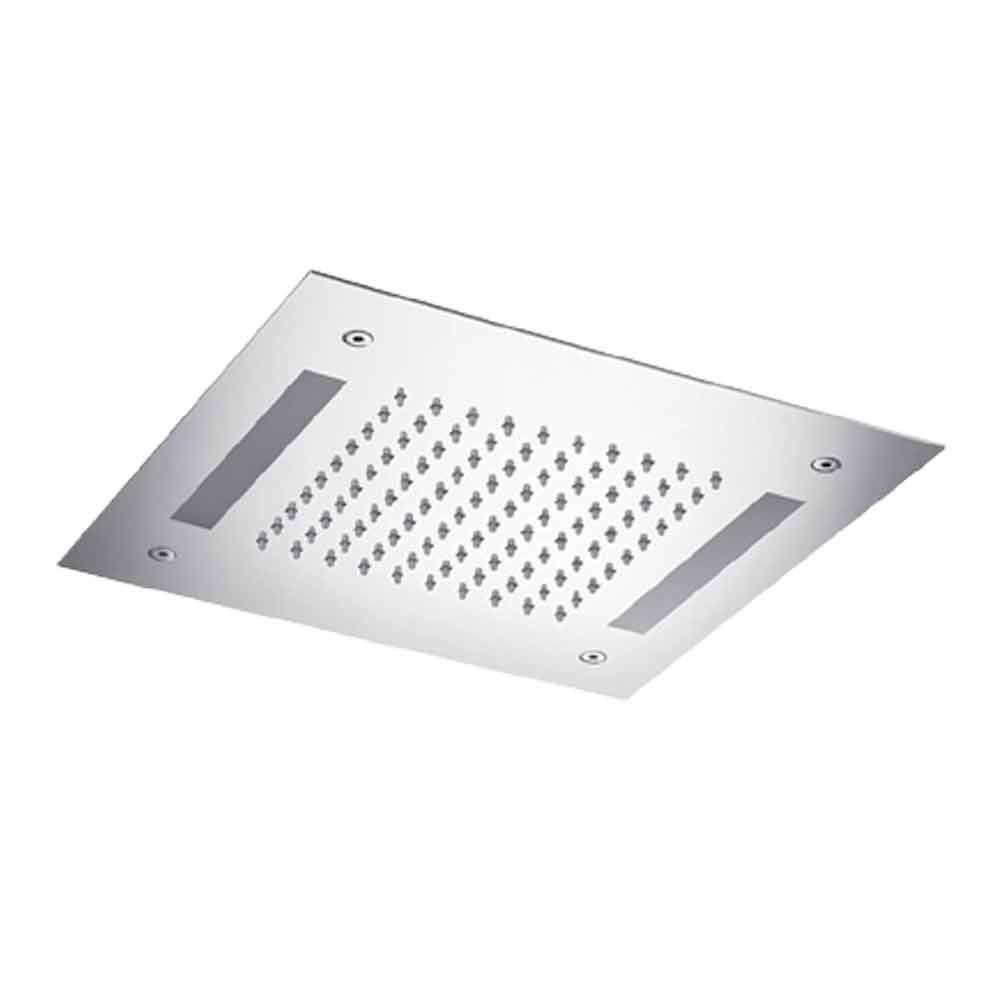 Quadratischer Duschkopf aus Edelstahl mit Farbtherapie, edles Made in Italy-Produkt.