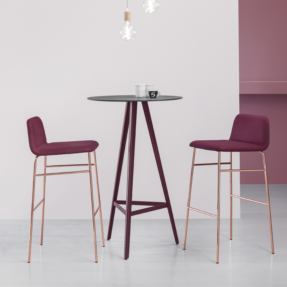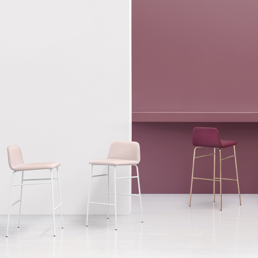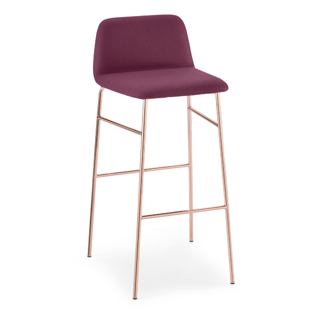 Hoher Hocker aus italienischer Herstellung mit lackiertem Metall und Polsterschale mit Stoff bespannt. Einfache Linien ziehen sich durch die Figur dieser Ergänzung mit einer zeitgenössischen Seele, die für diejenigen entworfen und kreiert wurde, die nach einer minimalen Lösung suchen, ohne auf ein originelles und modernes Design verzichten zu müssen. Was geboren wird, ist ein Sitz, der dank der Verwendung hochwertiger Rohstoffe Funktionalität und Stil in Einklang bringt und es schafft, die Einrichtung des Raumes mit einer einzigartigen Persönlichkeit und einer konkreten Eleganz zu vervollständigen.