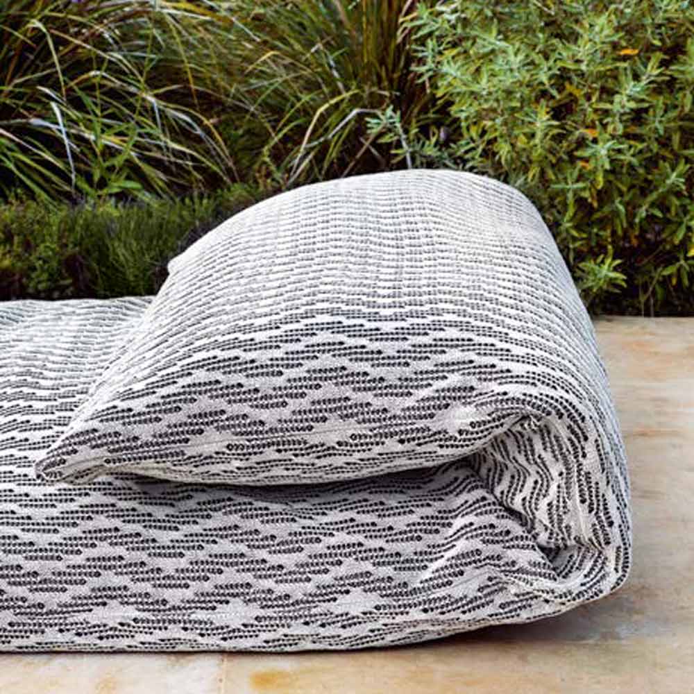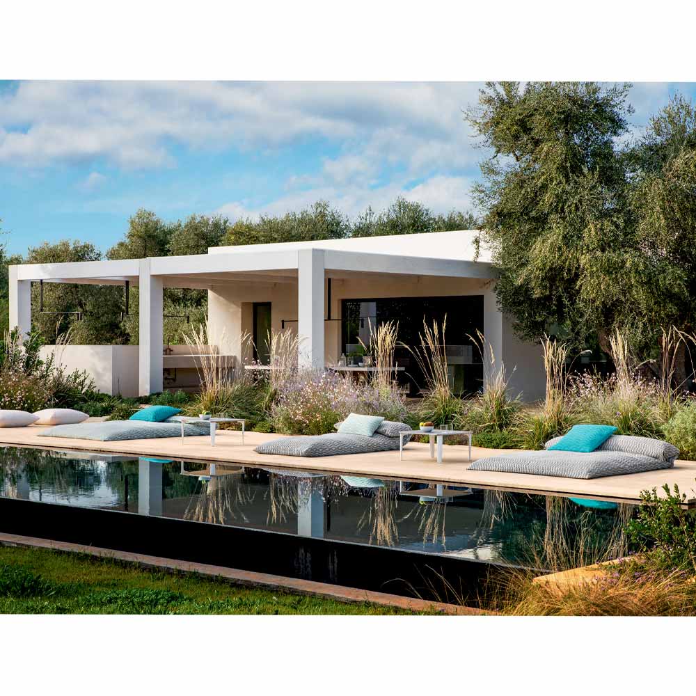 Tagesbett-Hockers im Freien bietet dank der Faltlinie auf drei Vierteln der Oberfläche extremen Komfort, sodass der Bereich, der dem Rest der Schultern und des Kopfes gewidmet ist, gut definiert und noch komfortabler ist.