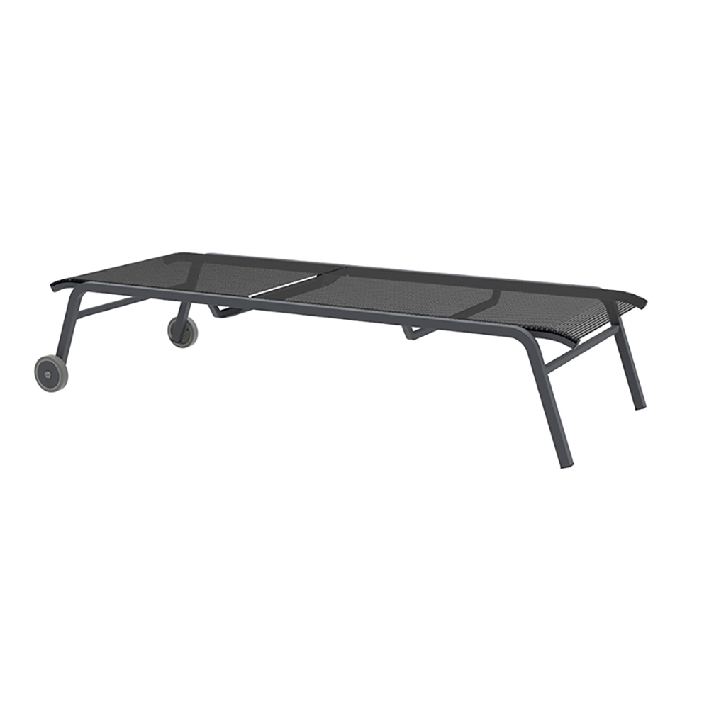 Texplast- Sitzfläche. Die Verzinkung und die Besonderheit des Texplast-Gewebes machen die Liege