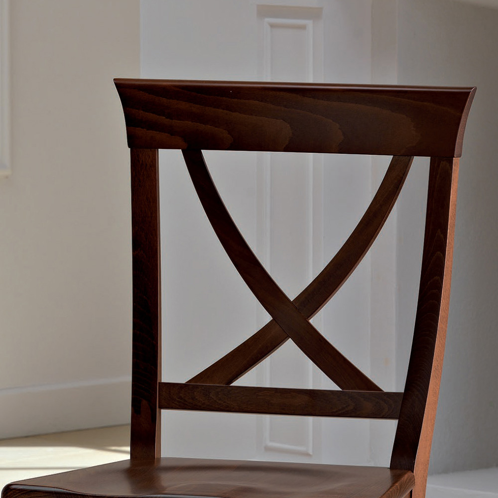 Massivholzstuhl mit gekreuzter Rückenlehne, Luxus made in Italy.