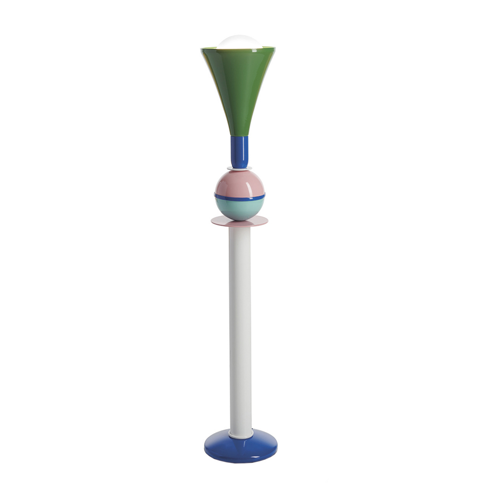 Es wird in Italien von erfahrenen Handwerkern hergestellt, die bestimmte Verarbeitungsphasen befolgen. Es besteht aus farbigem Aluminium und besteht aus dünnen Formen und sanften Farben. Der Lampenschirm lenkt das Licht nach oben und sorgt so für ein weiches und geschwungenes Licht. Möglichkeit, zwei verschiedene Maßnahmen zu wählen: