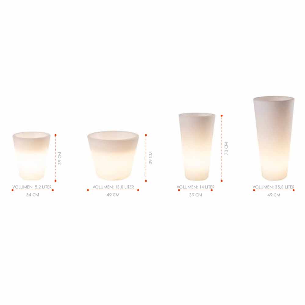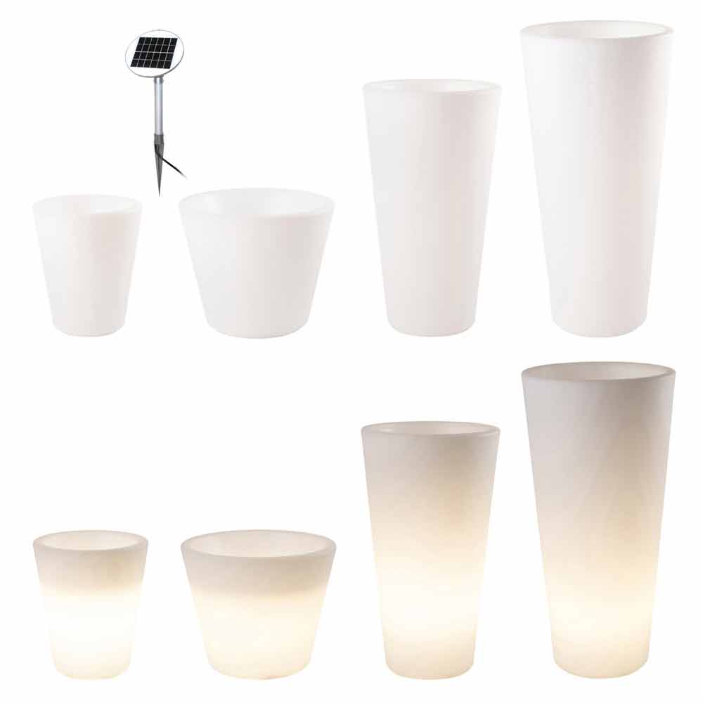 Weiße und moderne Design-Leuchtvase für drinnen oder draußen mit LED oder Solar in verschiedenen Größen.