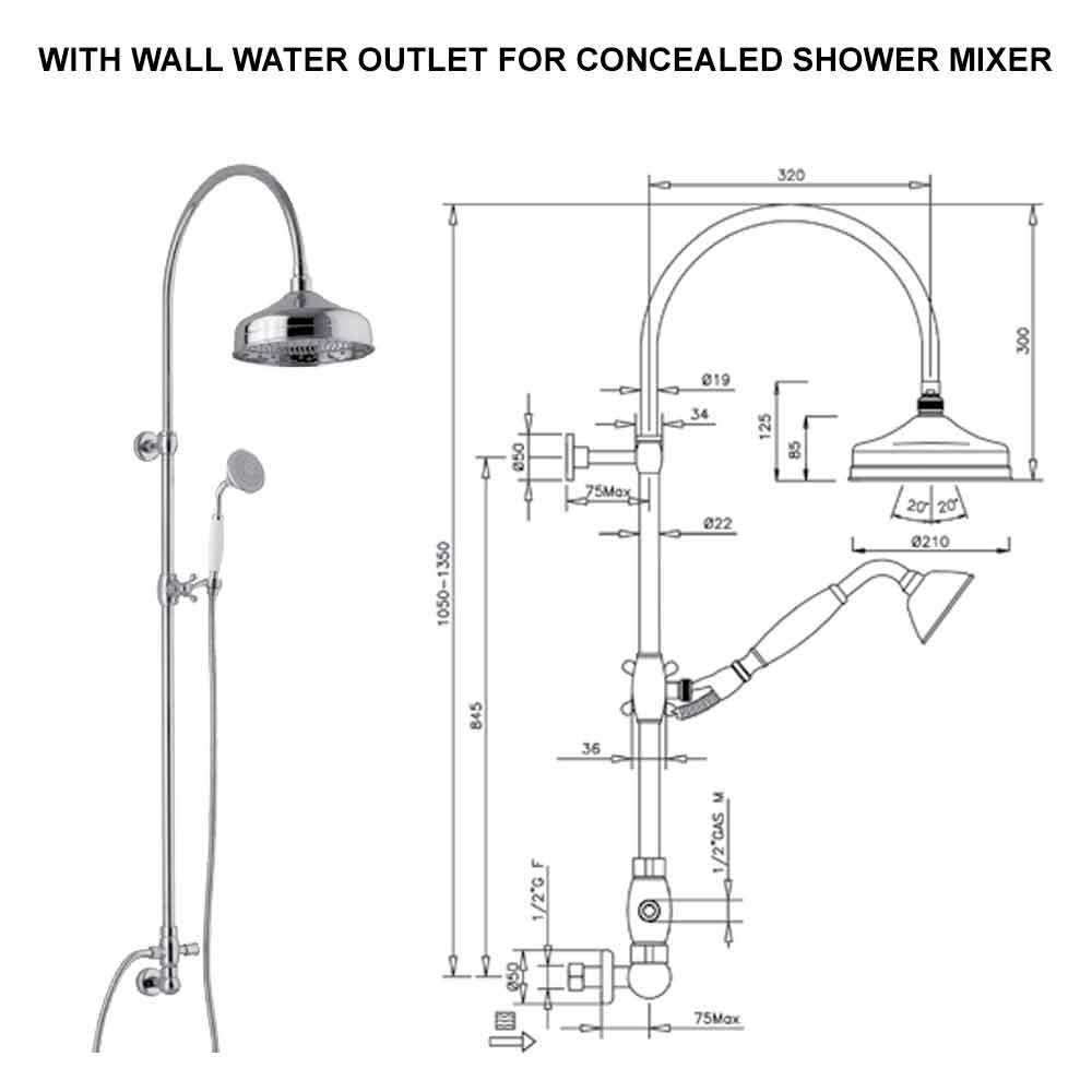 - Duschsäule aus Messing;