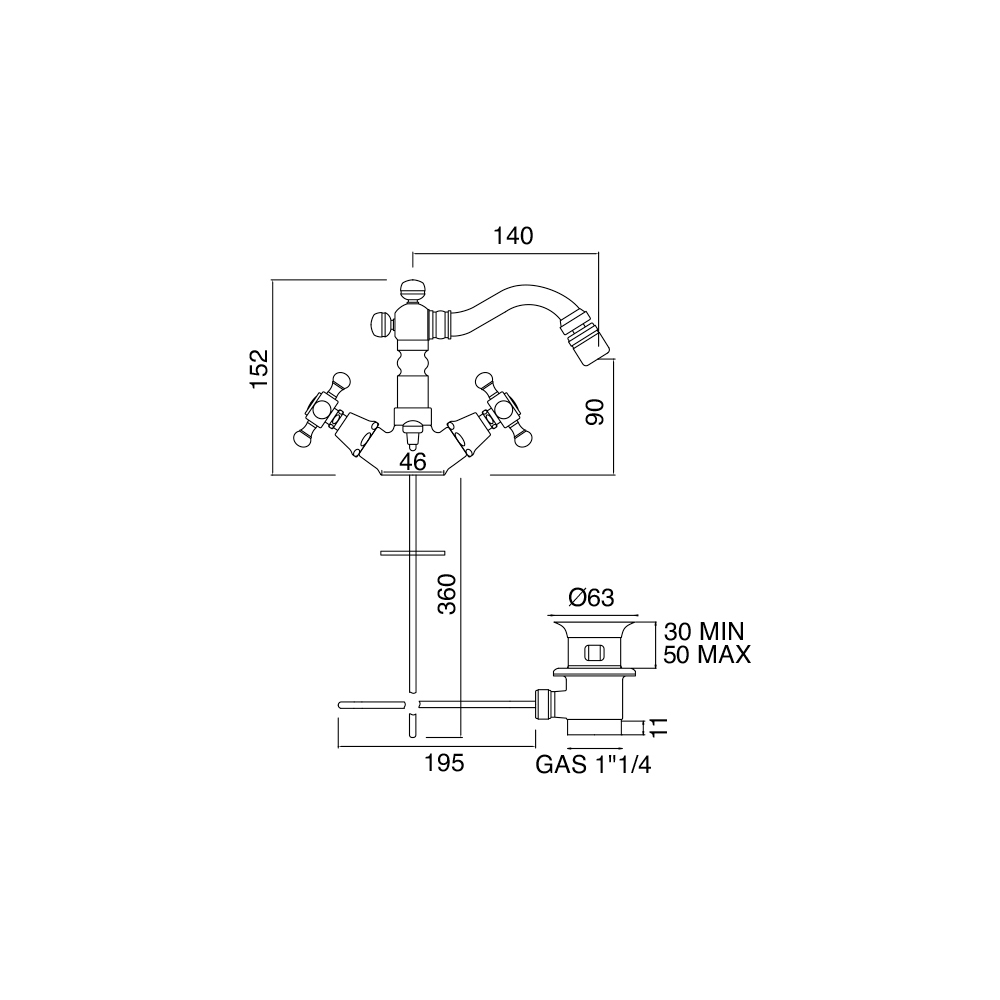 Einloch-Bidet-Mischbatterie mit Ablauf, aus Messing.