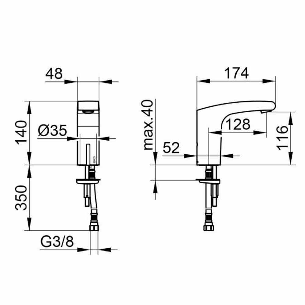 Moderne Waschbecken Wasserhahn aus Messing verchromt ohne Ablauf mit praktischem Infrarot - Sensor.