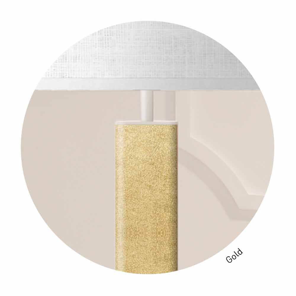 - glänzendes weißes Metall, reines Goldleder und weißes Leinen.