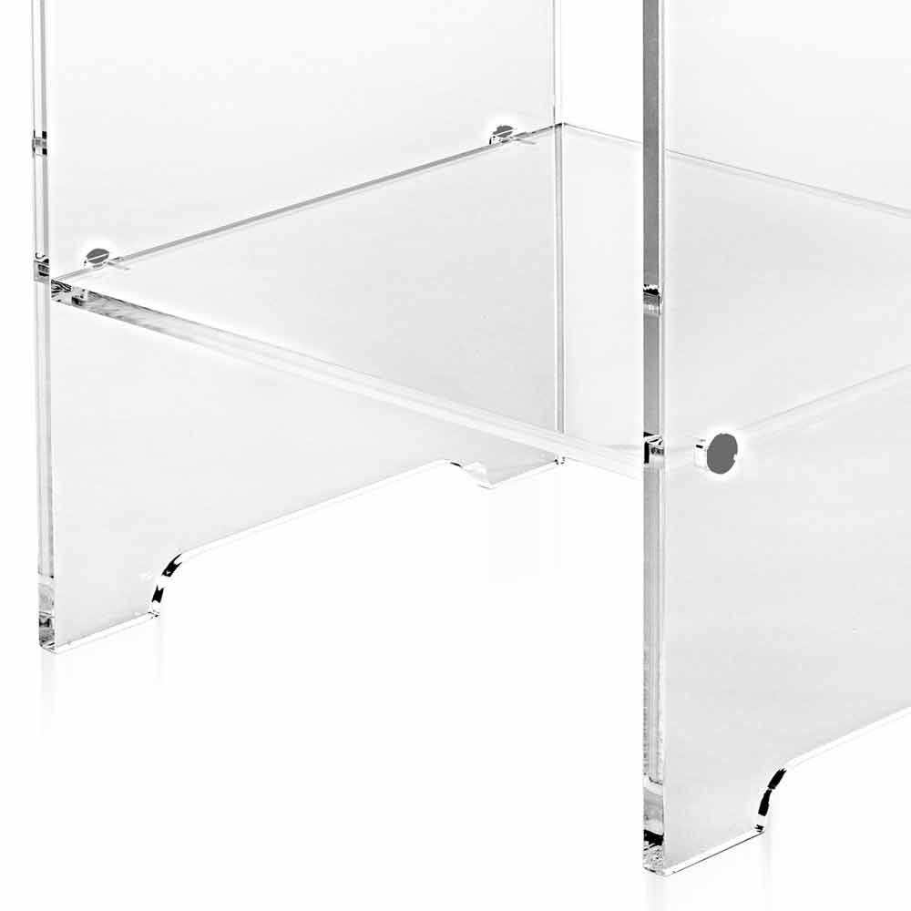 Mimi moderner Design transparenter Couchtisch / Nachttisch, made in Italy Neben Ihrem Bett als praktischer Nachttisch, neben dem Sofa als Couchtisch, neben der Badewanne als Handtuchhalter und Beauty-Produkten: ein vielseitiges 100mm transparentes, 100mm transparentes, 100% lasergeschnittenes Plexiglas, lasergeschnitten bei hohen Temperaturen gebogen. Die wichtige Dicke macht die Struktur völlig selbsttragend. Die physikalisch-technischen Eigenschaften von Plexiglas (stoßfest, nicht verformbar, unveränderlich, wärmeisolierend) machen diesen Artikel zu einem praktischen und funktionellen Möbelstück, das für jede Umgebung geeignet ist. Die Helligkeit und Helligkeit werden über die Zeit konstant und unverändert beibehalten. Das PMMA Plexiglas aus reinem Polymer ist ungiftig, hypoallergen, geruchlos und antibakteriell. 100% recycelbar. Entworfen, entworfen und hergestellt in Italien, mit italienischen Materialien.