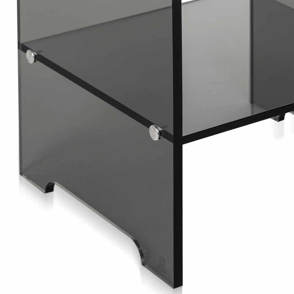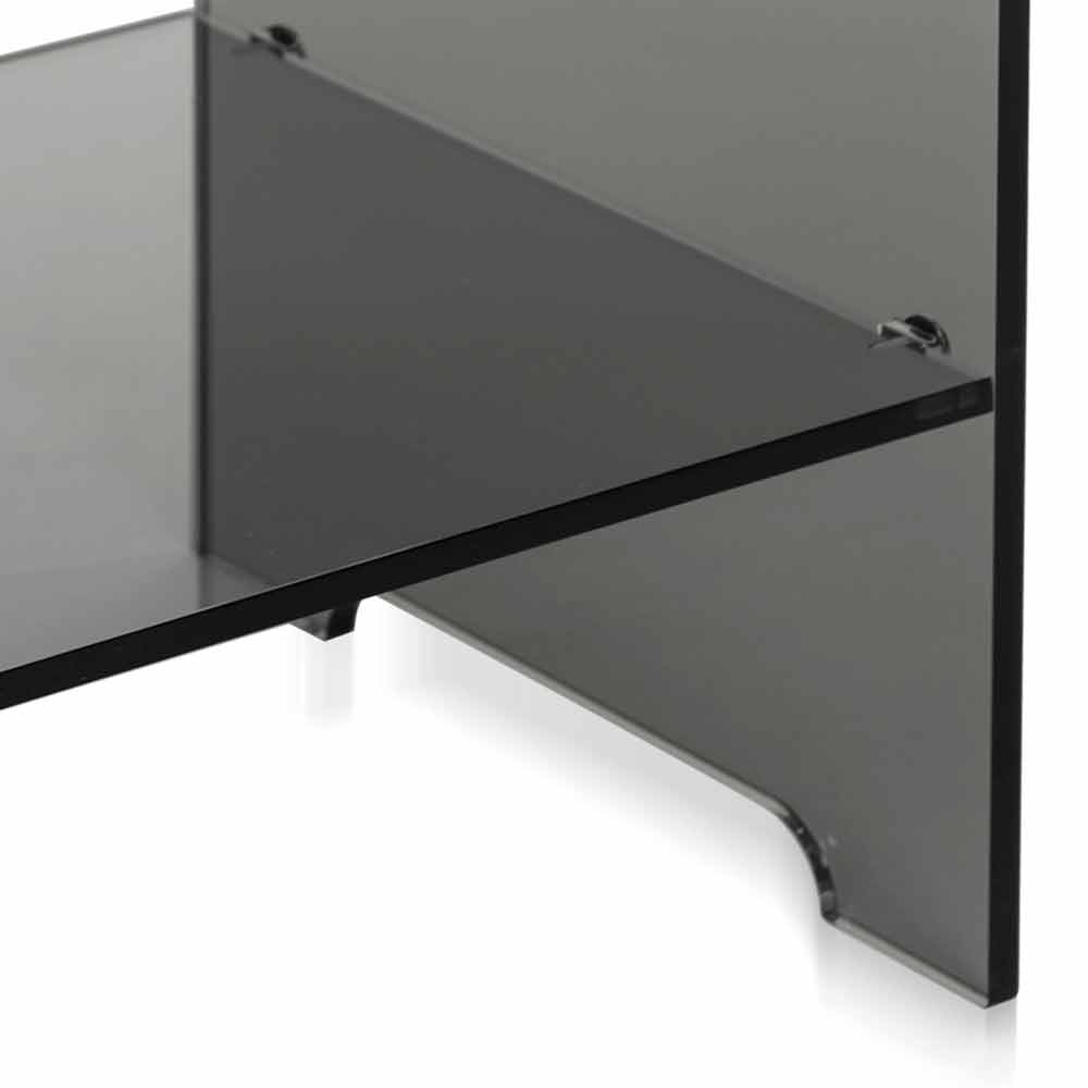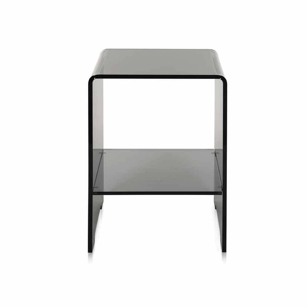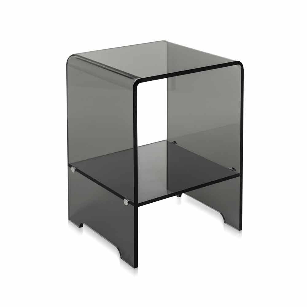 Mimi modernes Design transparent geräucherte Couchtisch / Nachttisch, made in Italy Neben Ihrem Bett als praktischer Nachttisch, neben dem Sofa als Couchtisch, neben der Badewanne als Handtuchhalter und Beauty-Produkten: eine vielseitige 10mm starke transparente geräucherte Tischplatte aus 100% reinem Polymer, lasergeschnittenes Plexiglas bei hohen Temperaturen gebogen. Die wichtige Dicke macht die Struktur völlig selbsttragend. Die physikalisch-technischen Eigenschaften von Plexiglas (stoßfest, nicht verformbar, unveränderlich, wärmeisolierend) machen diesen Artikel zu einem praktischen und funktionellen Möbelstück, das für jede Umgebung geeignet ist. Die Helligkeit und Helligkeit werden über die Zeit konstant und unverändert beibehalten. Das PMMA Plexiglas aus reinem Polymer ist ungiftig, hypoallergen, geruchlos und antibakteriell. 100% recycelbar. Entworfen, entworfen und hergestellt in Italien, mit italienischen Materialien.